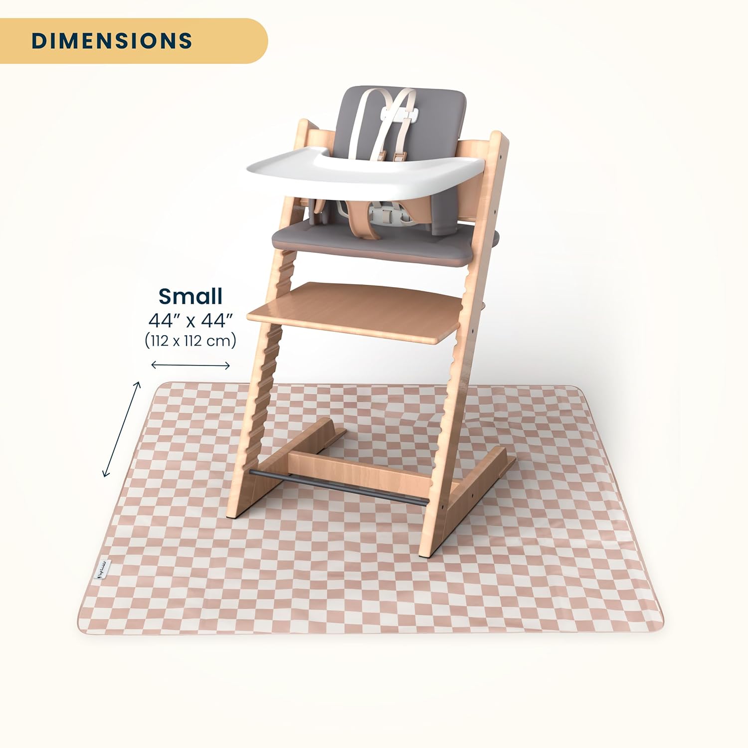 Tiny Twinkle Splat Mat for Under High Chair or Table | 44″ x 44″ Waterproof & Mess-Proof High Chair Mat for Baby, Machine Washable for Mealtime or Art(Beige Checkers)