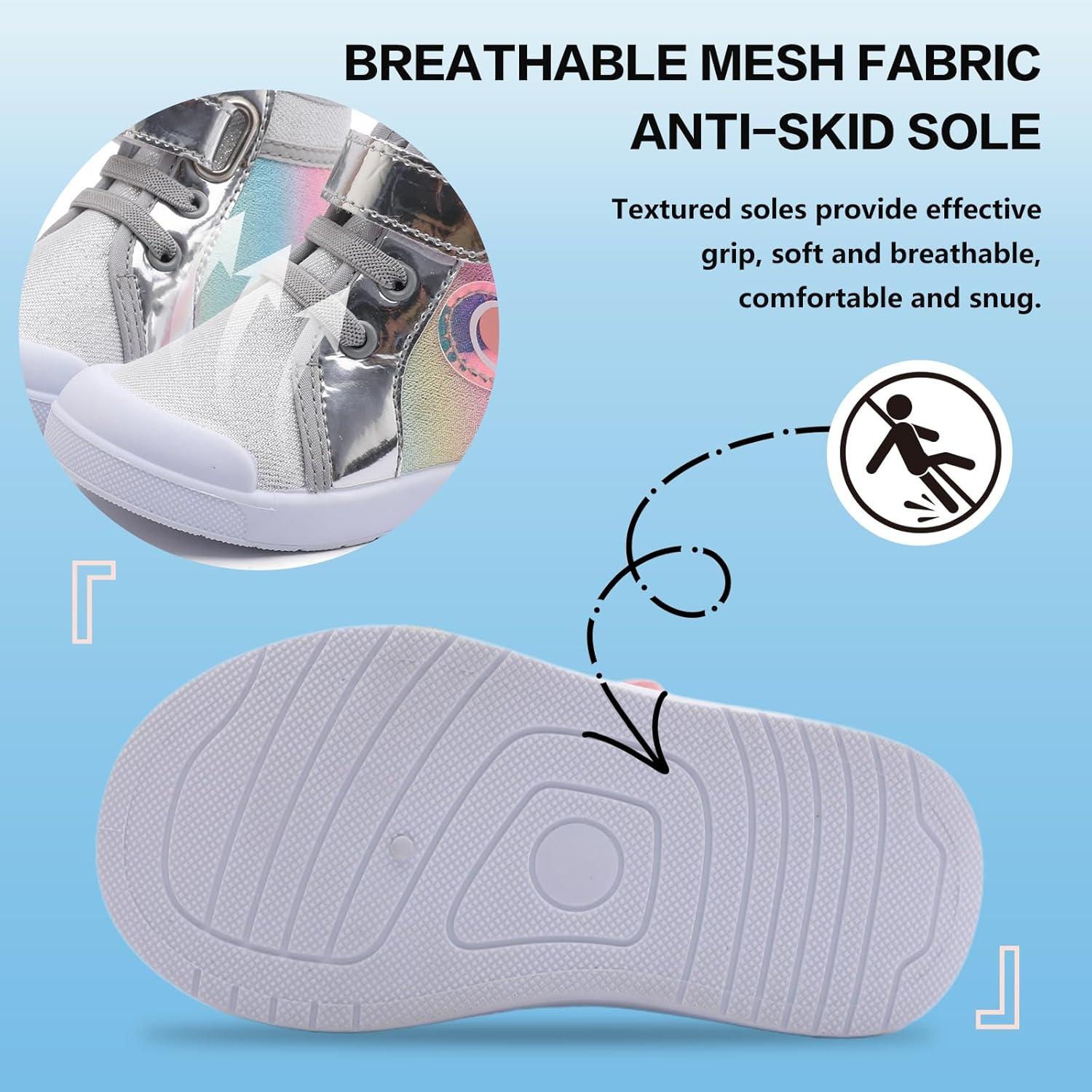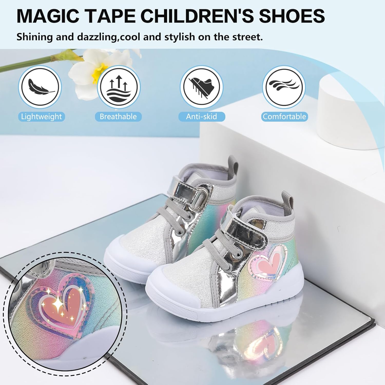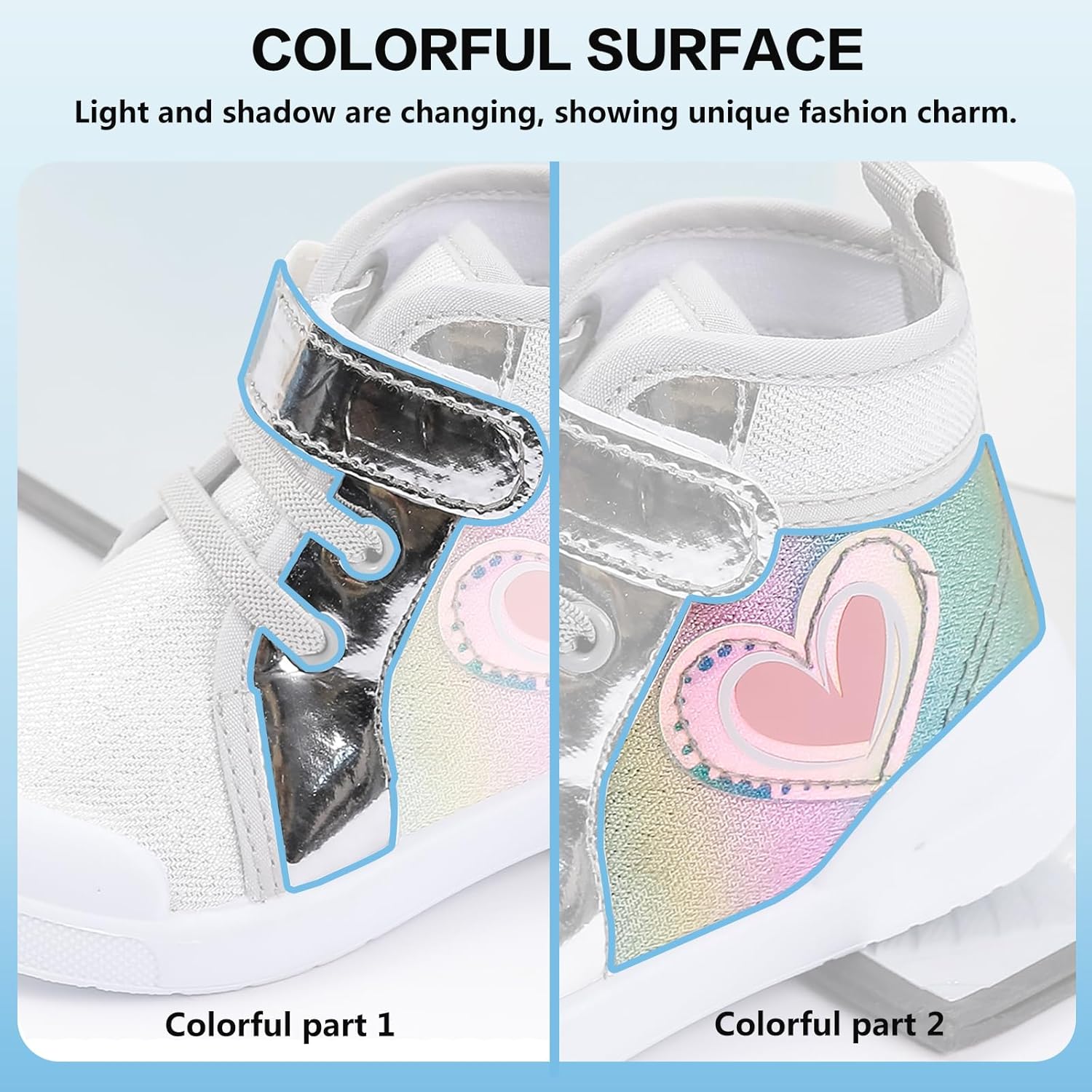 Toddler Girls Sneakers Kids High Top Casual Canvas Shoes with Sparkle Color Change Flipping Sequins