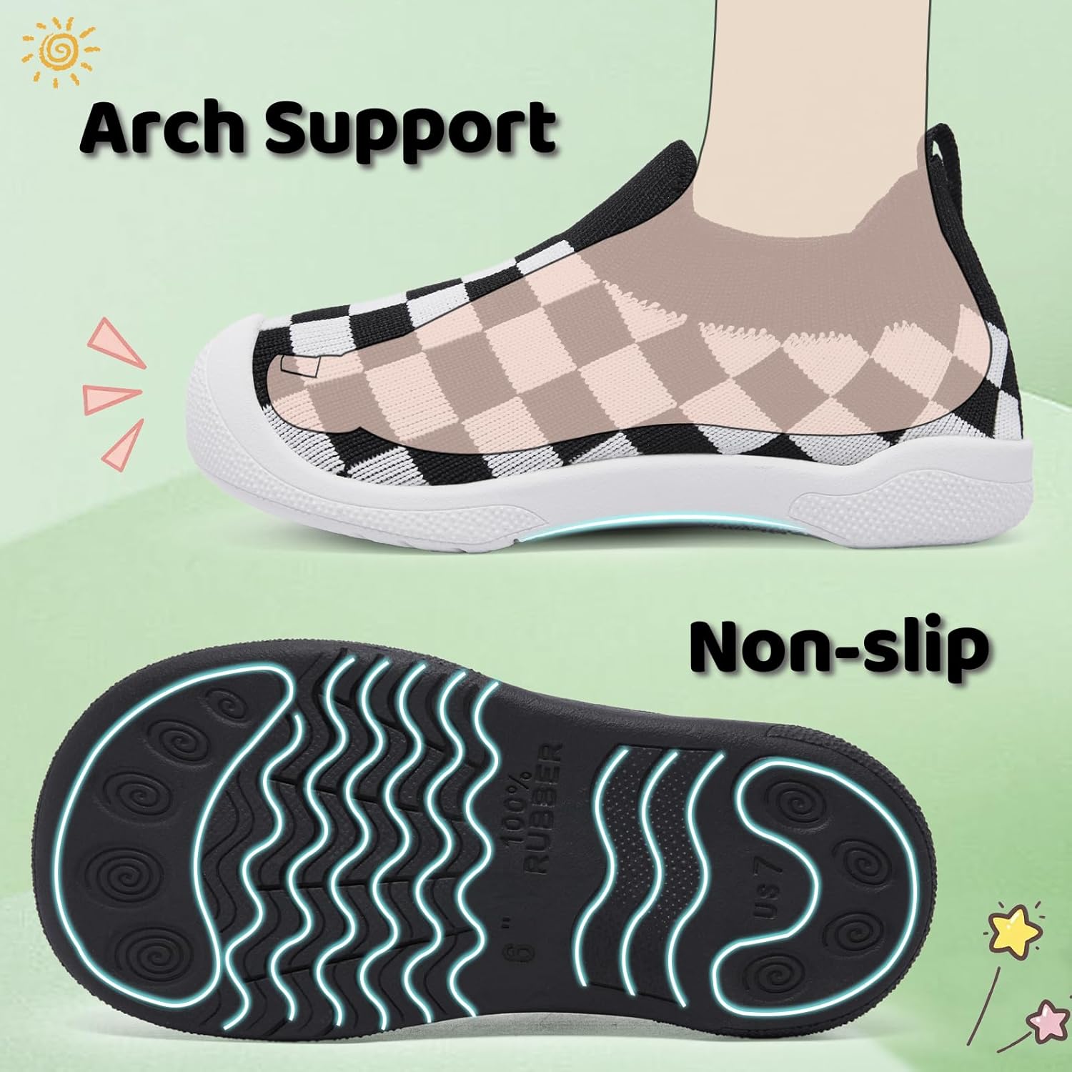 Non-slip and Lightweight–This pair of kid’s shoes adopts high-elastic and wear-resistant rubber soles, with a unique anti-slip texture design at the bottom, which greatly enhances the grip, easily copes with running, jumping and climbing, and protects every step of the anti-slip.