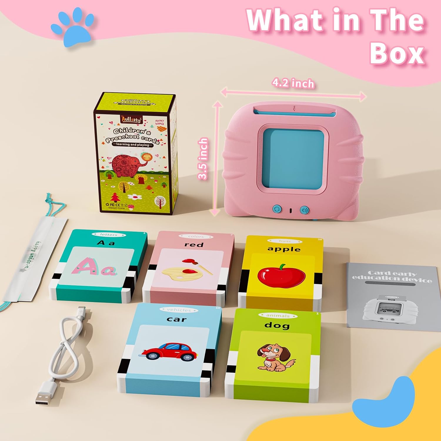 [ Rechargeable and Durable ] – Aullsaty toddler toy comes with a built-in rechargeable battery and a charger instead of extra batteries, It can be used up to 5 hours and no need to charge frequently. The cards is made of high quality double copper paper which is thicker and durable, not easy to bend. The toy is very portable and size is perfect for toddlers to hold and use. It is also equipped with a cute bag for easy storage of the cards and reader, perfect for children and families to travel.