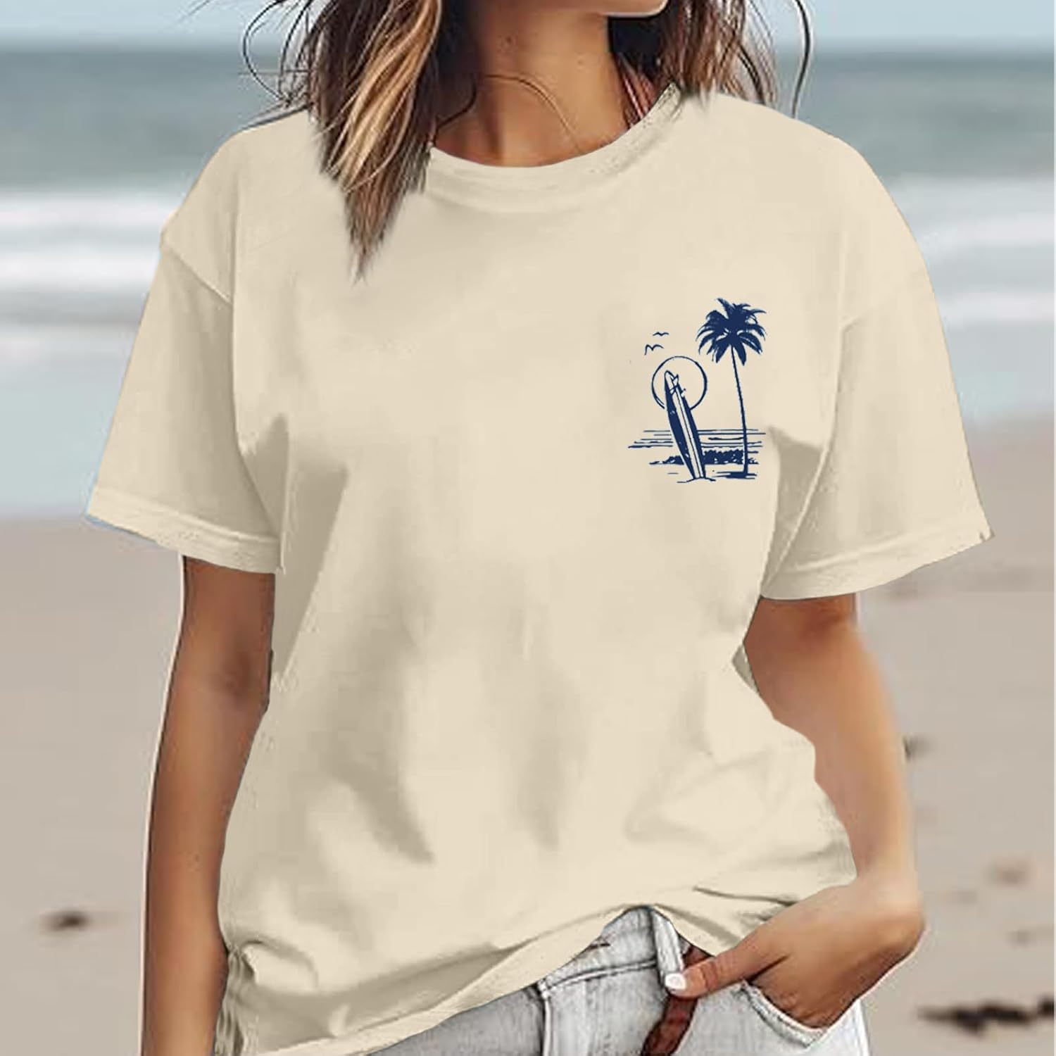 Tuislay Oversized Beach Shirts for Women Palm Trees Beach Graphic Tshirts Summer Hawaiian Vacation T Shirts Baggy Tops