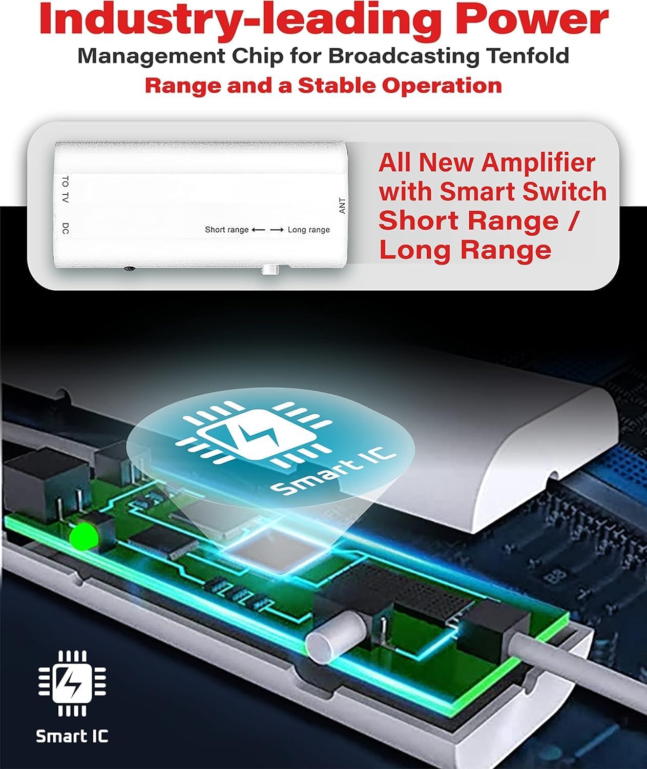 ✔️FULL HD CRYSTAL-CLEAR TV & HD SOUND QUALITY: Our Smart TV Antenna features an upgraded new Smart Switch to control a powerful 2025 Amplifier Signal Booster with a built-in next-generation Smart IC Chip and Crystal Clear Filtering Technology, which allows reception of signals up to 600 miles. The new technology filters out cellular and FM signals for a clearer picture, less noise and more free-to-air TV signals with enhanced gain, range and frequency performance.