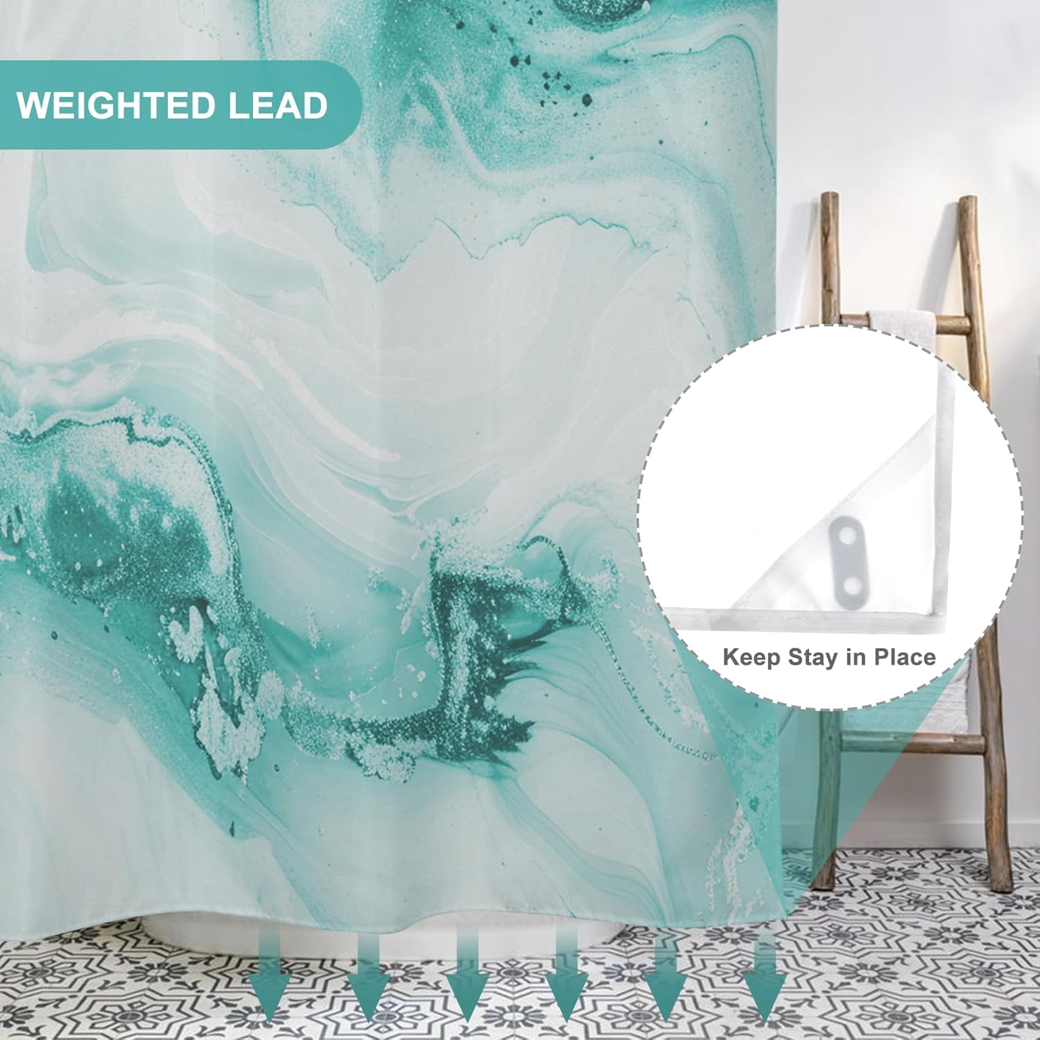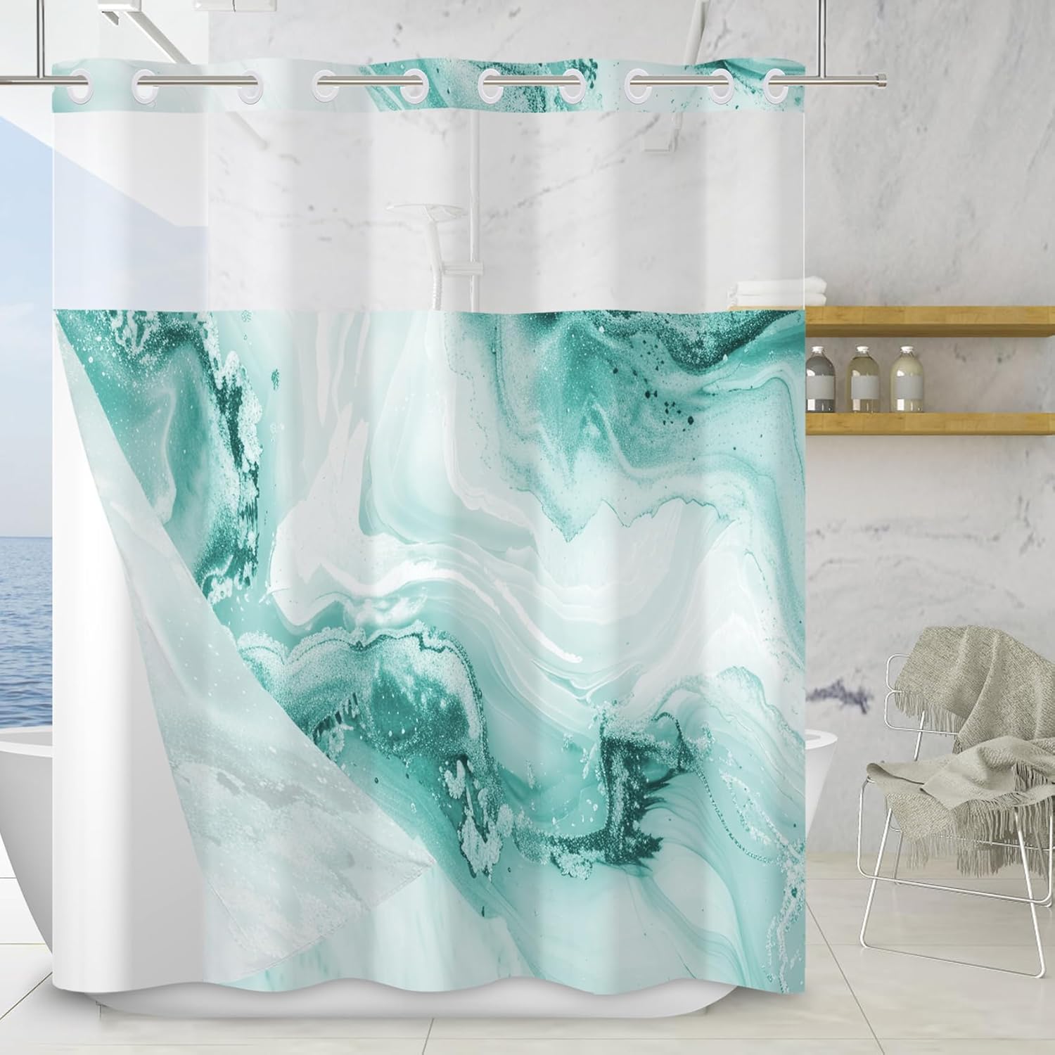 TYLCLTX No Hook Shower Curtain with Snap in Liner Teal Marble Modern Crack Ink Texture Double Layers Shower Curtain Waterproof Fabric See-Through Top Window Bathroom Decorative 71x83inch