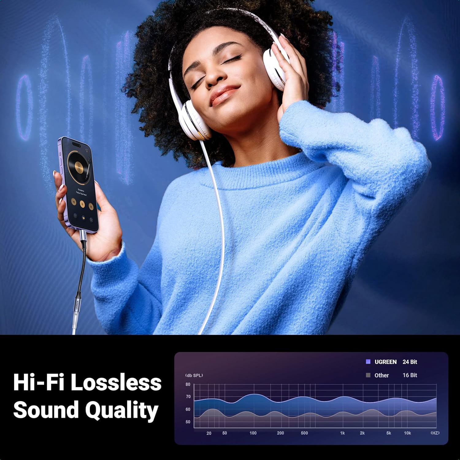 UGREEN 3.5mm plug to Lightning cable made from original Apple chips provides a secure and stable sound transmission. 100% compatibility to the iOS system without error message.
