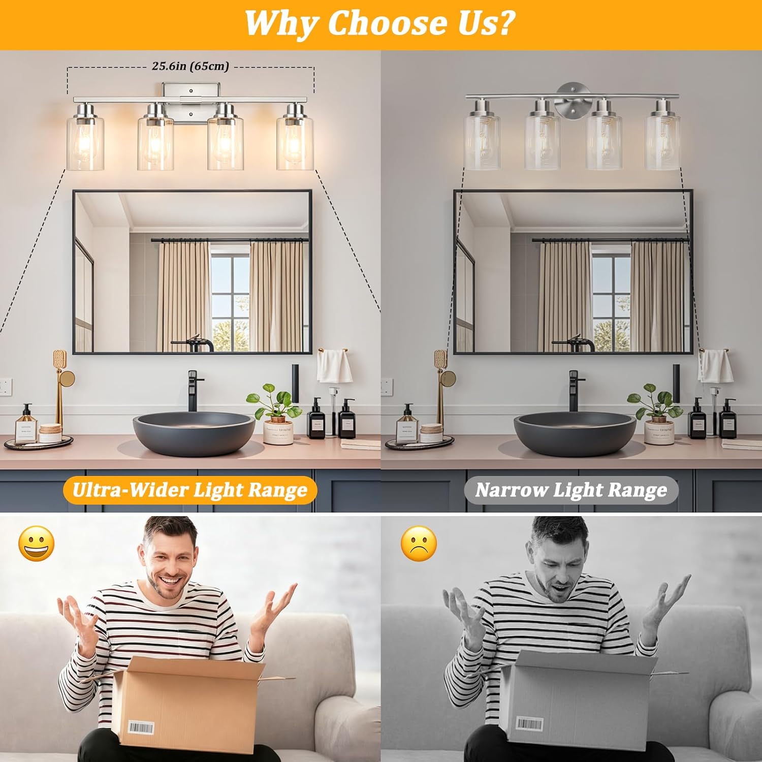 Up and Down Installation: This bathroom lighting fixtures over mirror is 26.77 inches in length, making it ideal for illuminating larger bathroom spaces. Install our bathroom mirror lights either upwards or downwards to suit your preference.