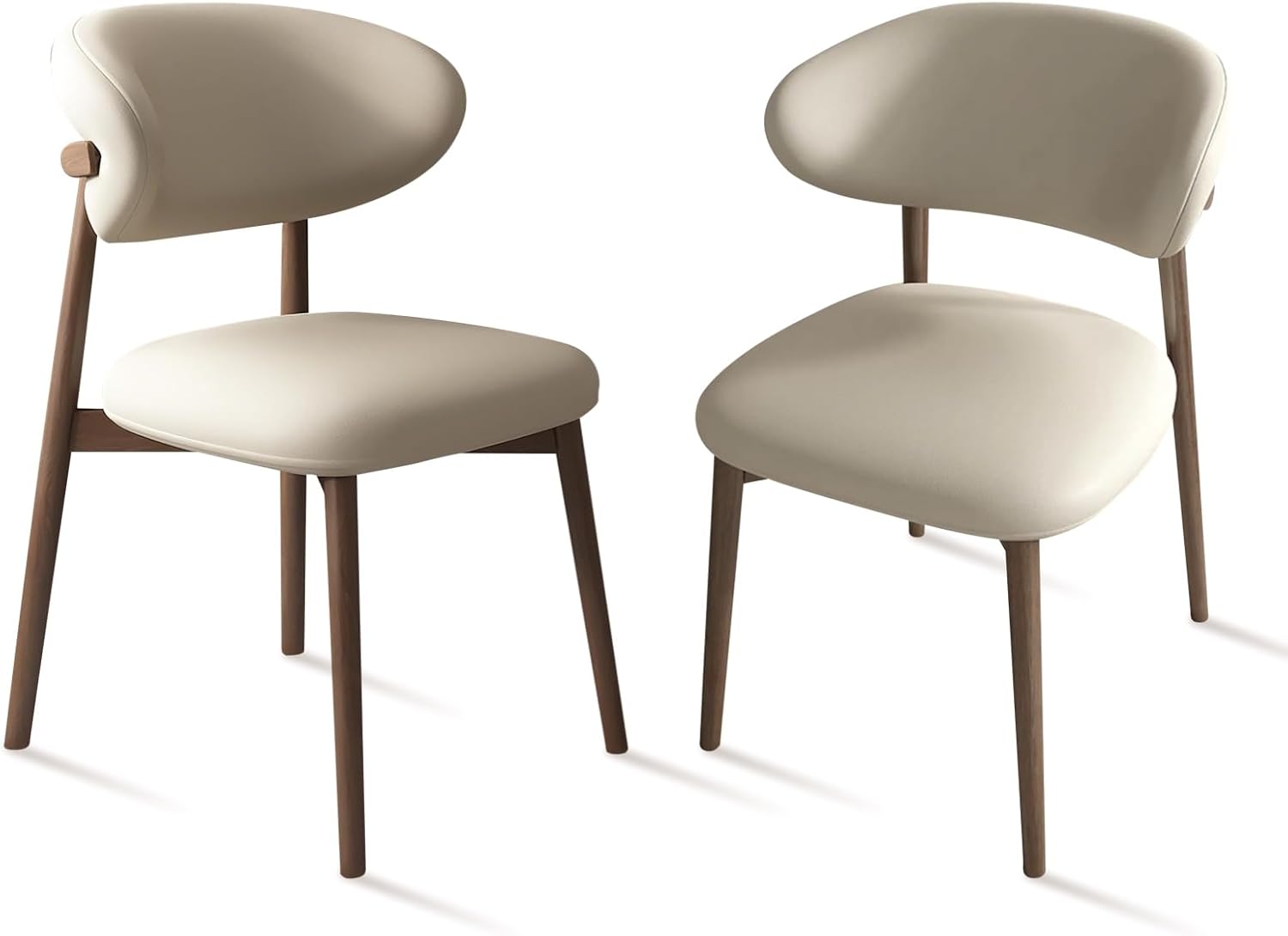 Upholstered Dining Chairs Set of 2,Mid Century Modern Kitchen Chairs with Back and Wood Frame,Faux Leather Dinner Chairs (Light Khaki + Light Walnut Legs, Set of 2)