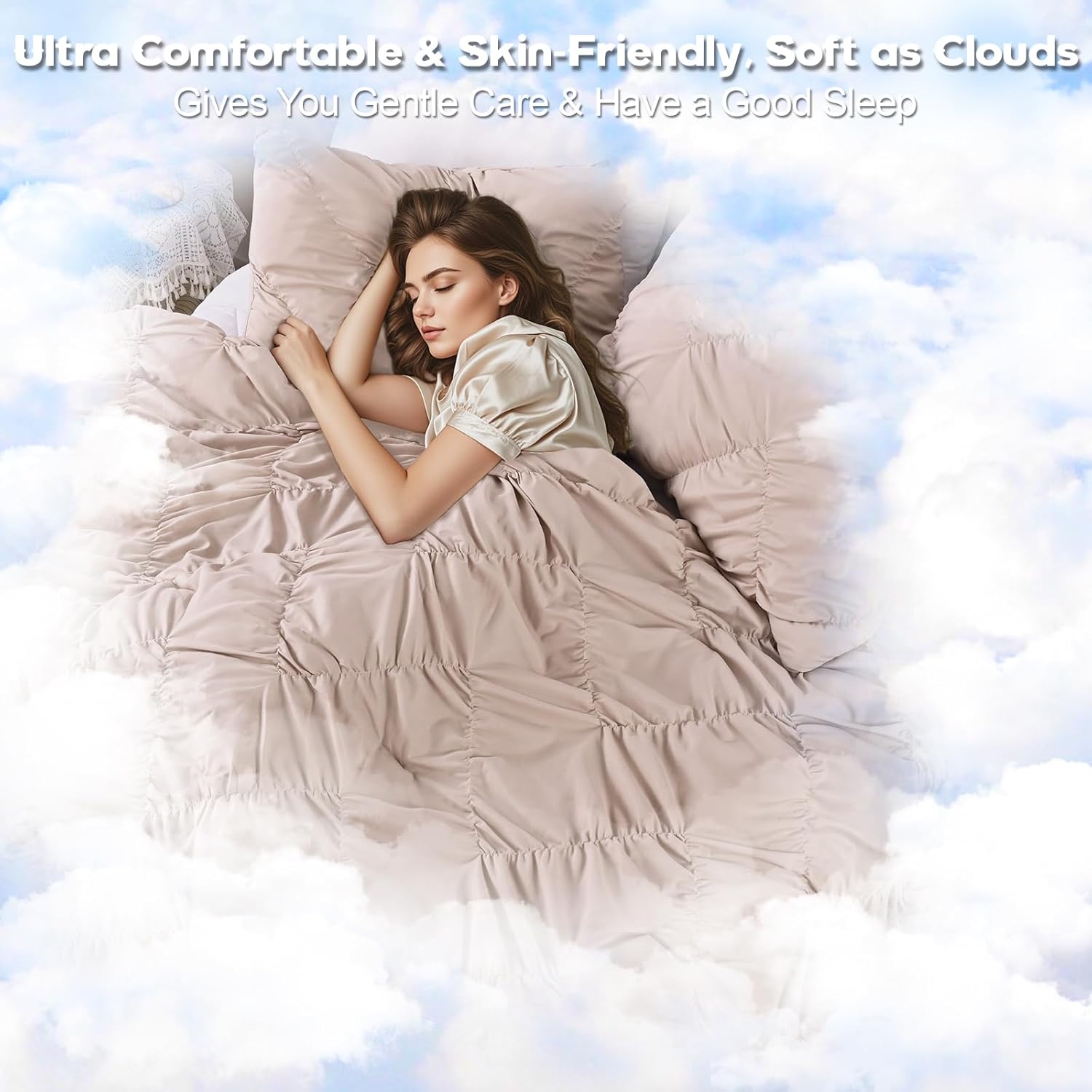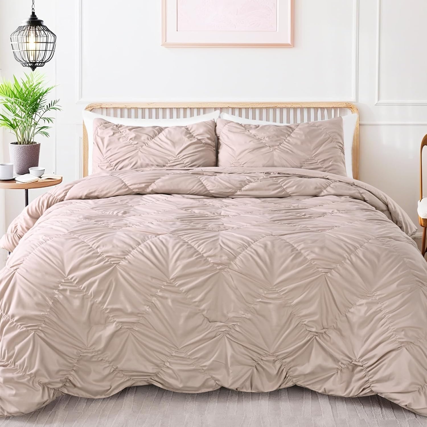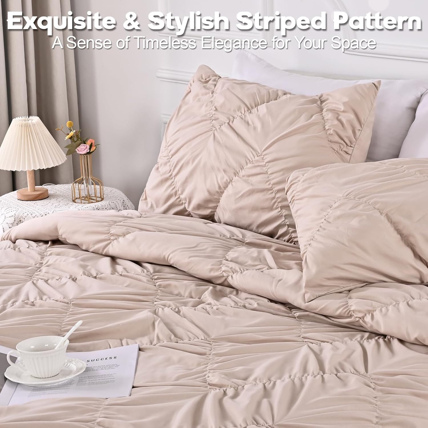 【Elegant Pinch Pleat Design & Stylish Home Decor】This king size quilt features a pinch pleat design with a geometric pattern, elegant pintuck look and simple solid color design, making it suitable for bedrooms of different styles. Enhance your space and add timeless elegance and fashion to your bedroom decoration.