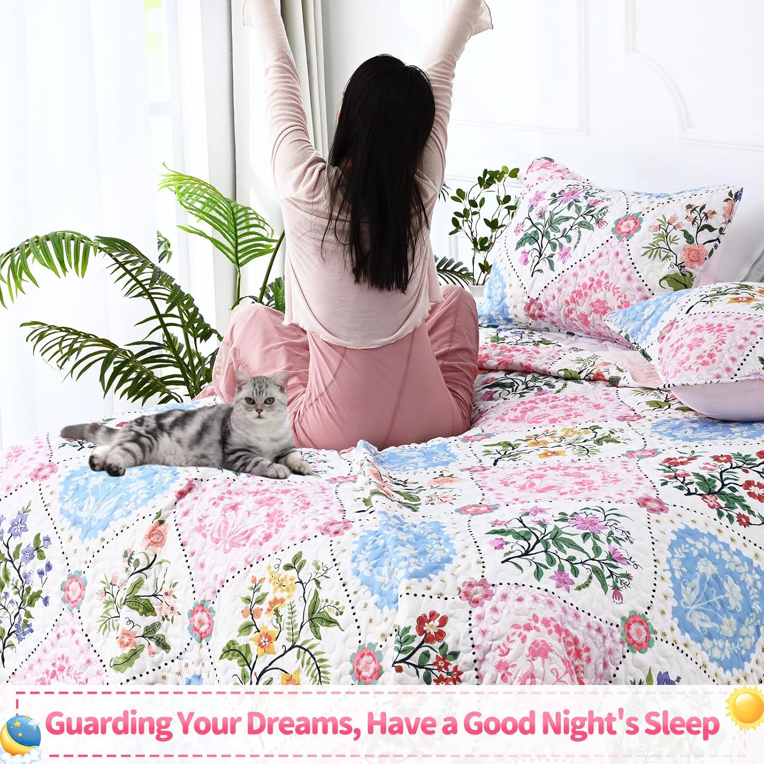 【Easy to Wash and Care】Worried about maintenance? Machine wash on gentle cycle, tumble dry low, this quilted bedspread doesn’t shrink or pill after washing. Nice for homeowners, renters, or anyone who wants a stylish, hassle-free quilt that stays beautiful without complicated care routines.