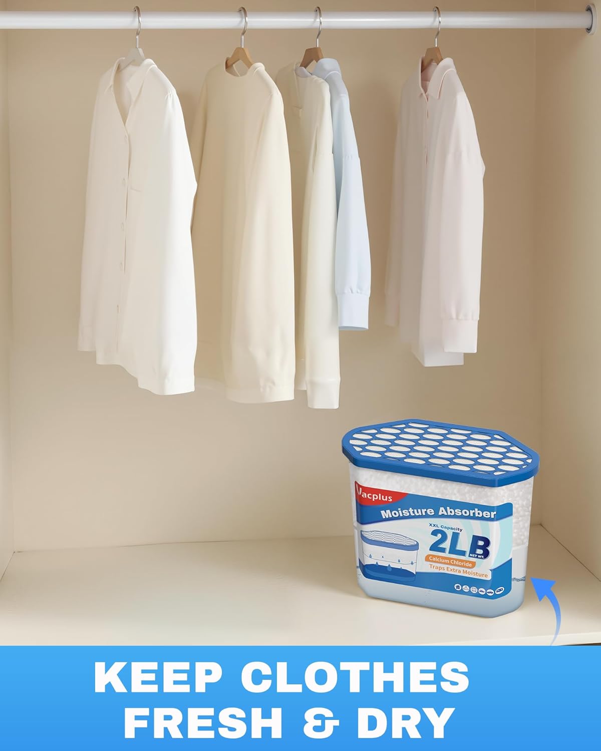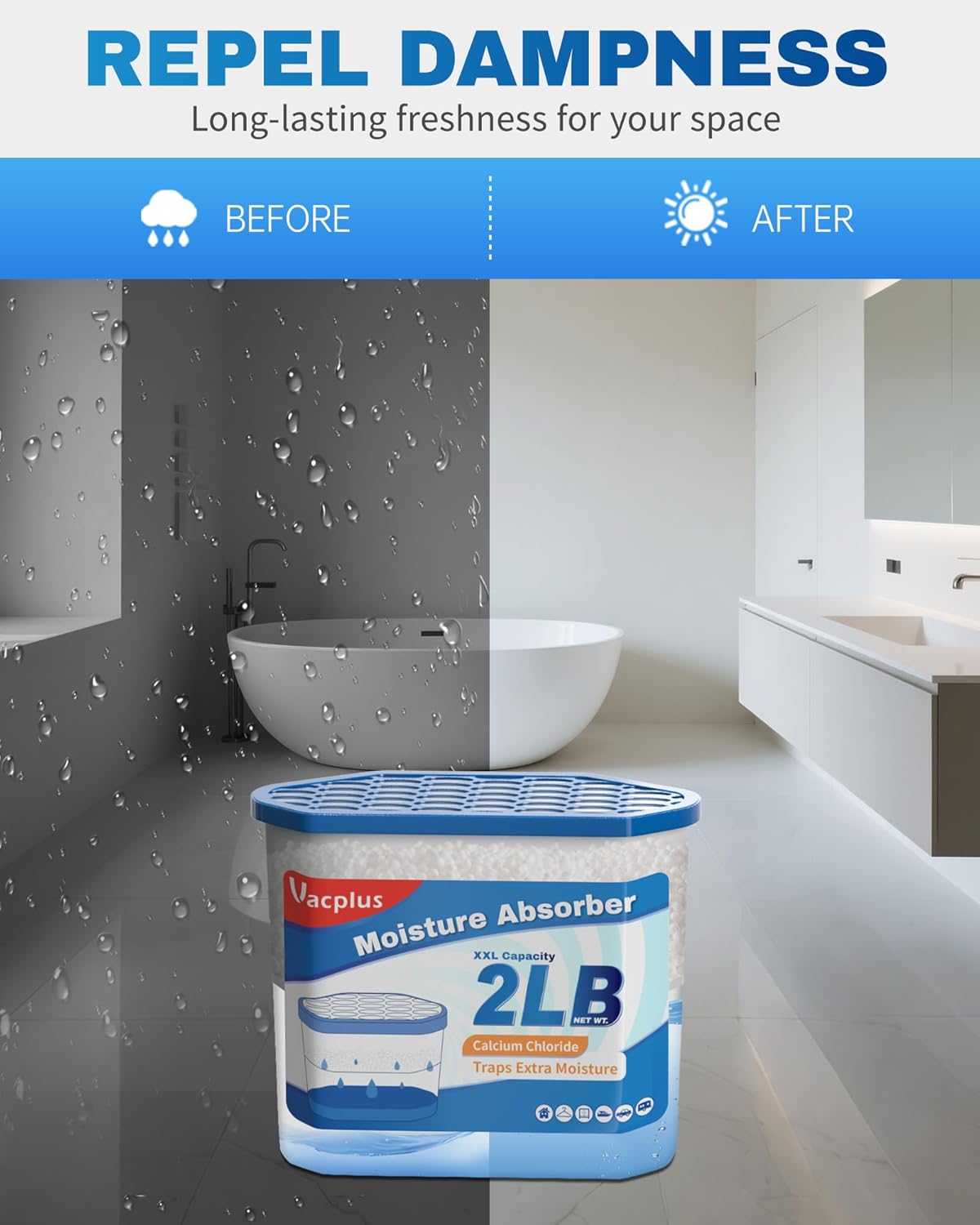 FRESHENS INDOOR AIR: Vacplus dual-purpose moisture absorber helps improve air quality by reducing excess humidity that can cause unpleasant smells. Its fragrance-free formula neutralizes odors at the source without relying on artificial scents, creating a cleaner, more breathable environment. Ideal for closets, bathrooms, and other enclosed, damp-prone spaces.