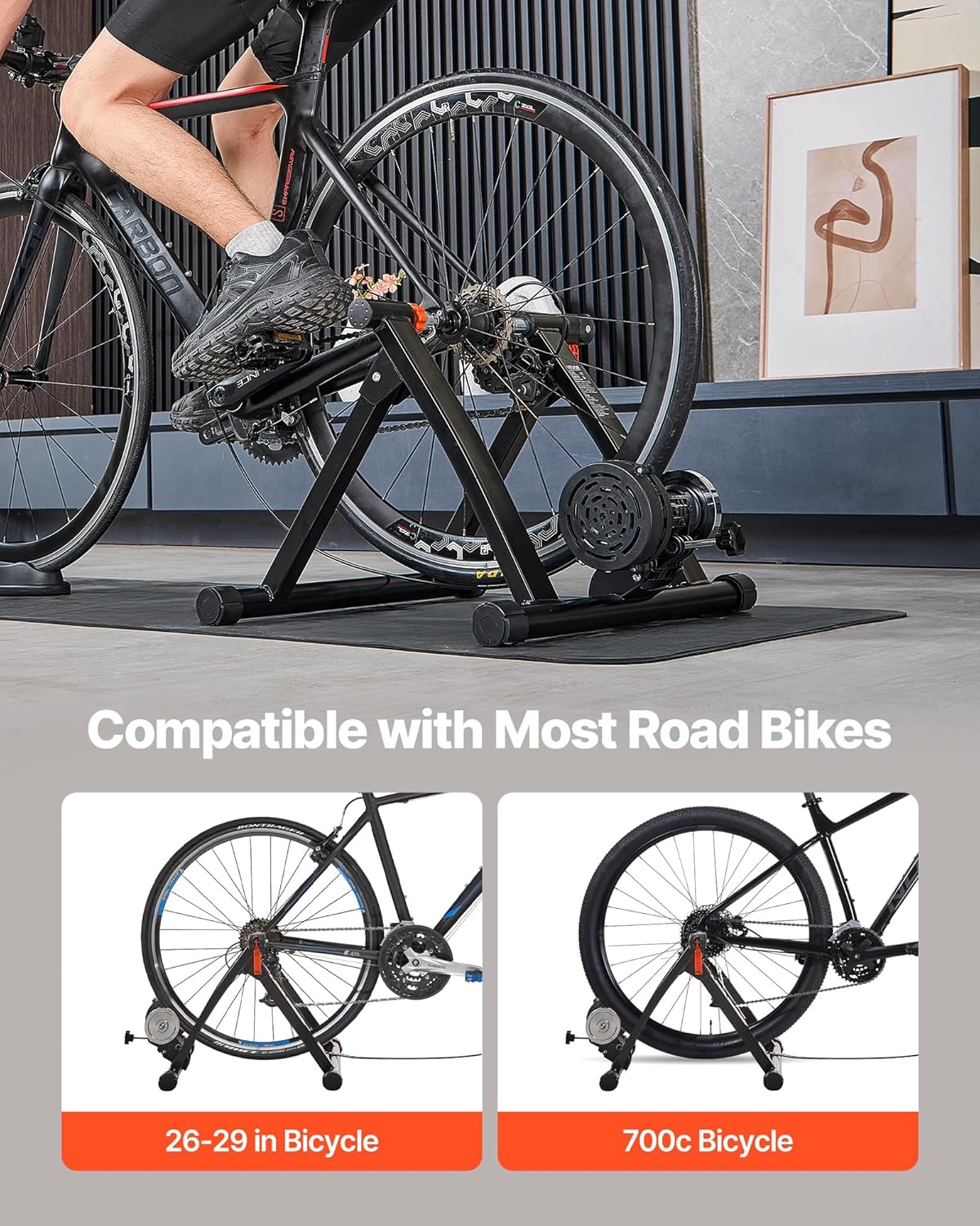 Efficient Training: Featuring 6 levels of magnetic resistance adjustment, our bike trainer can simulate real riding effects from warm-up to climbing. It supports physical fitness building, cycling skills enhancement, and rehabilitation