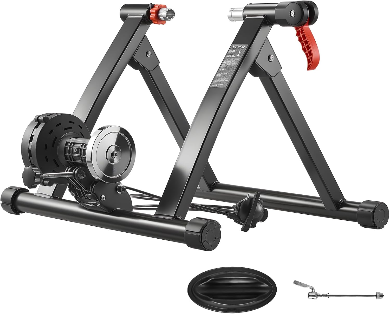 VEVOR Bike Trainer: 3 Types – Smart (1-13L, Compatible with Zwift App), Fluid, or 6L Magnetic for 26-29″/700C Wheels, Foldable Stand with Quick Release & Wheel Riser Block