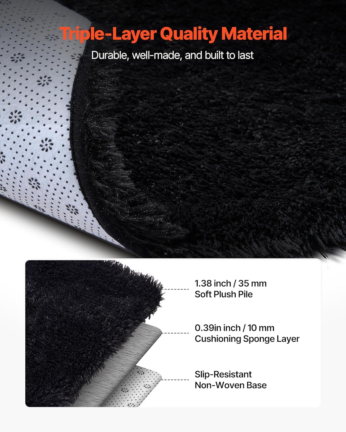 VEVOR Indoor Plush Area Rug, 8×10 ft Plush Carpet, Living Room Area Rug Fluffy with Triple-Layer Material, Soft Thick Pile Large Areas Rugs Shag for Bedroom, Lounge Area, Non-Shedding, Black