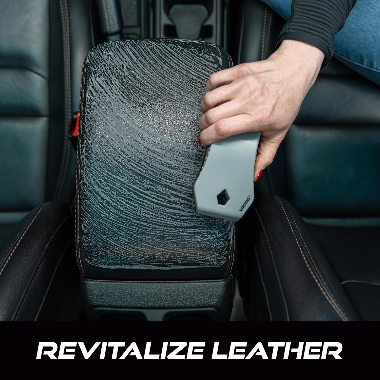 Use the car interior cleaner brush wet with your favorite leather cleaner or car cleaning supplies