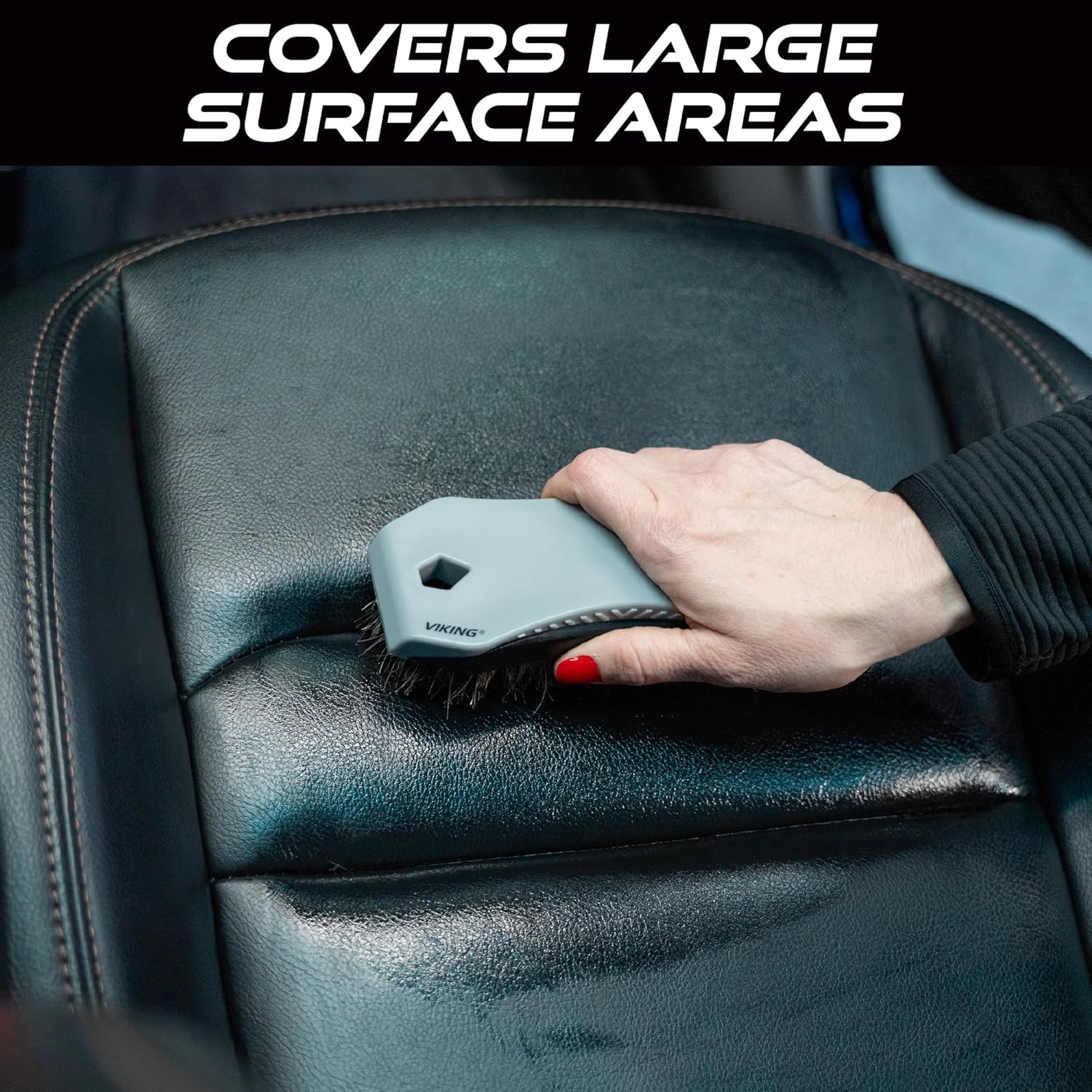 VIKING Leather Cleaner Brush, Horsehair Bristles for Car Interior, Cleaning Brush for Car and Home, Grey, 6.5 x 2.8 x 2 inch