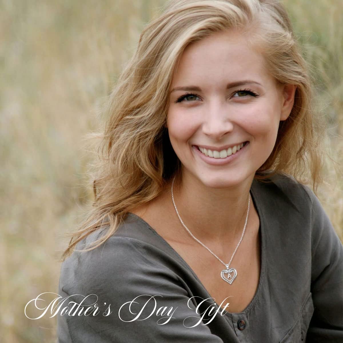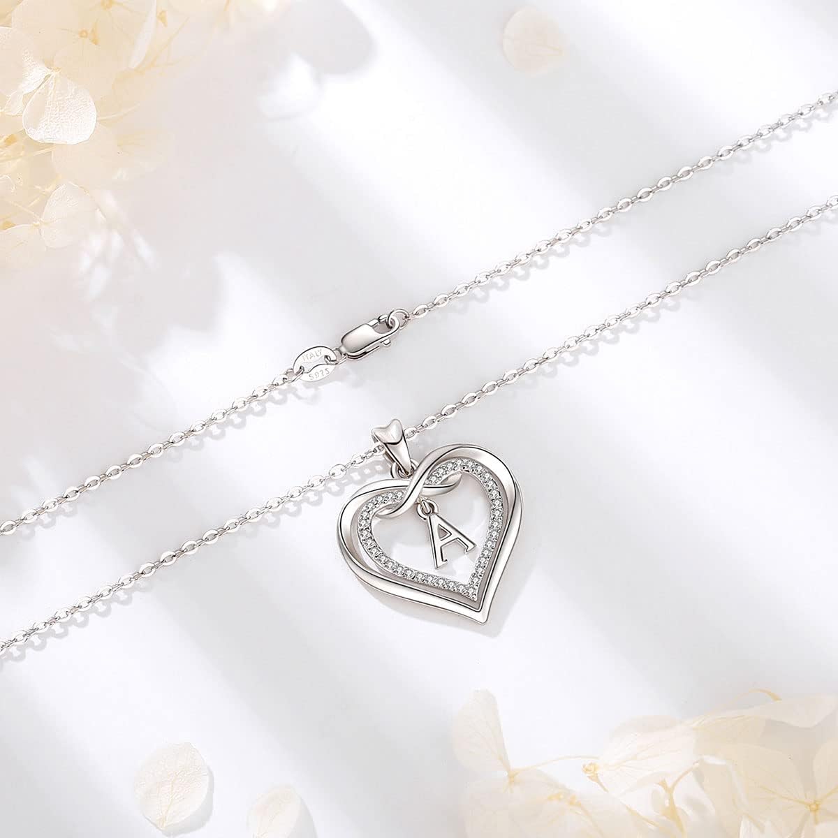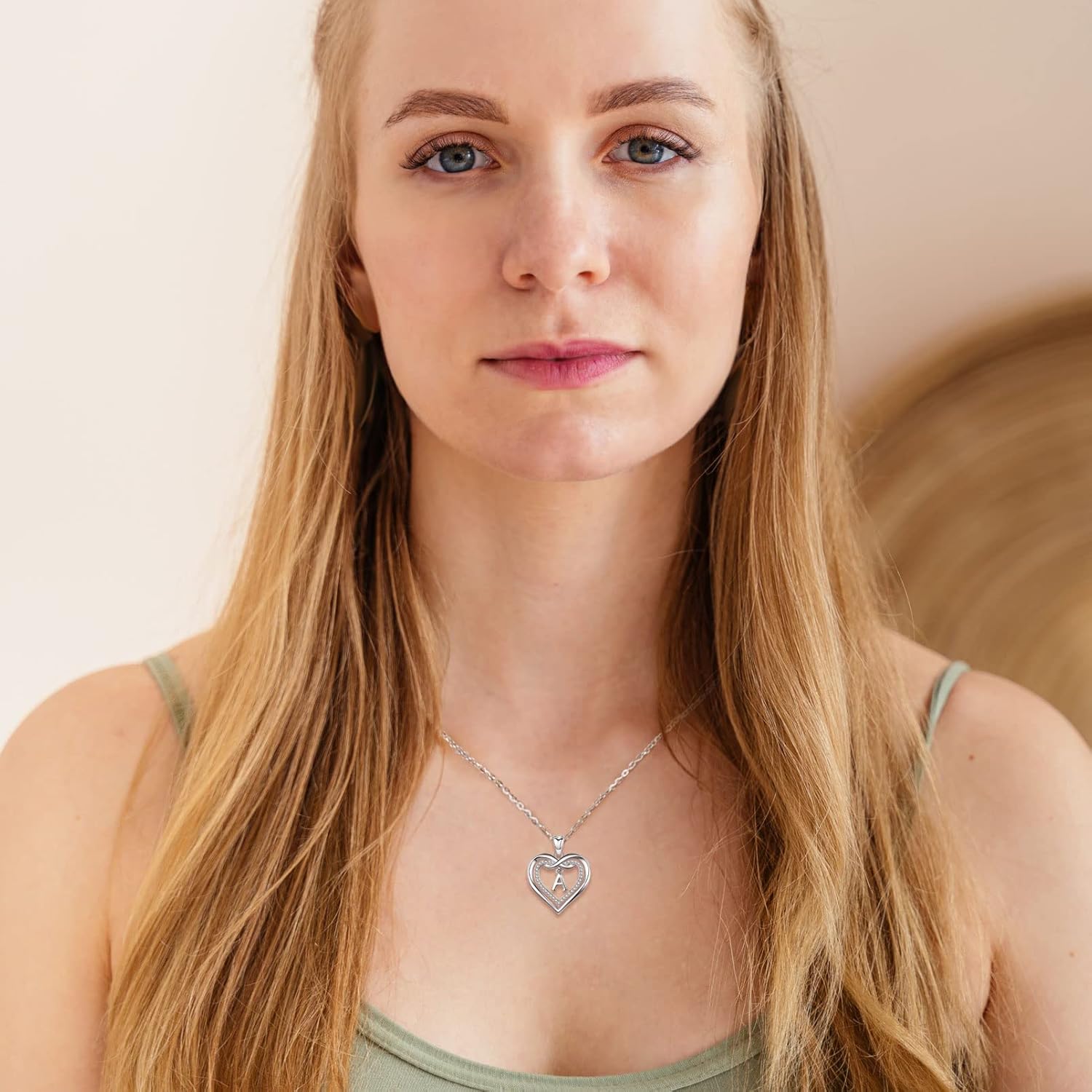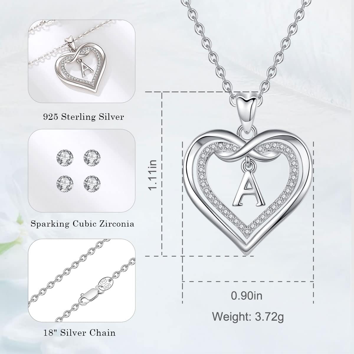 Vito 925 Sterling Silver Initial Necklace for Women, Cubic Zirconia Double Heart Letter Pendant, 18″
