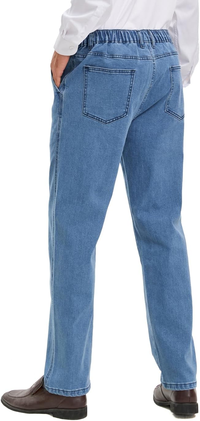voeeron Mens Elastic Waist Jeans Relaxed Fit Men’s Jeans with Elastic Waist with Zipper and Button