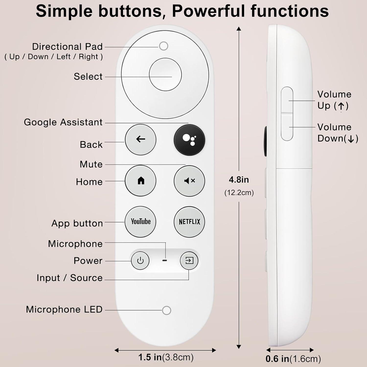 【Compatibility】Voice replacement for white Google-Chromecast-Remote, for Chromecast with Google TV Remote, for Google TV HD/4K Streaming Stick, for Google TV Streamer (4K). Only for Snow Chromecast Google!!