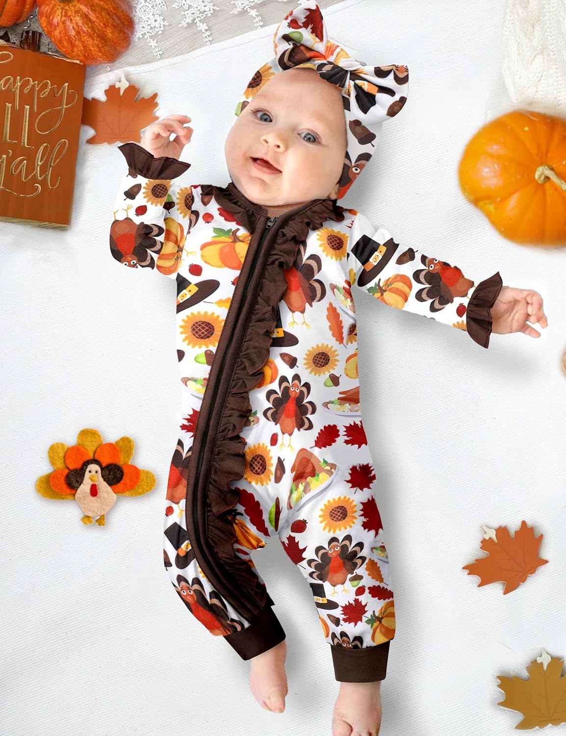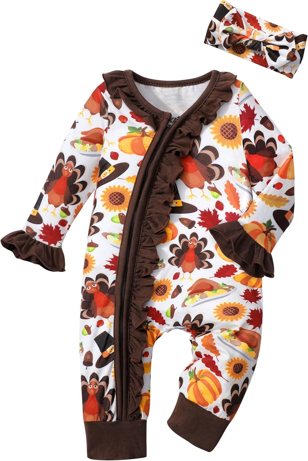Von kilizo Baby Girl Clothes Infant Newborn Onesie Clothes for Baby Girls Long Sleeve Zip Closure Outfit with Headband