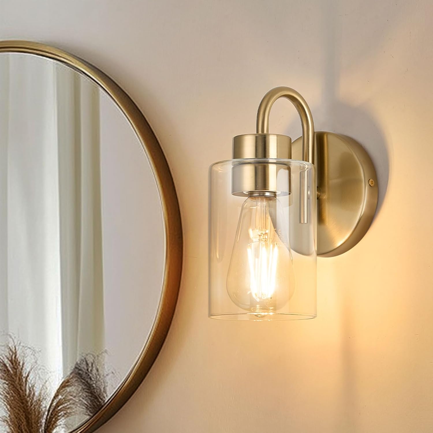 Wall Sconces Set of 2, Gold Bathroom Light Fixtures, Modern Wall Mounted Light Fixtures with Clear Glass Shade and E26 Bulb Base for Hallway Farmhouse Bedroom Living Room