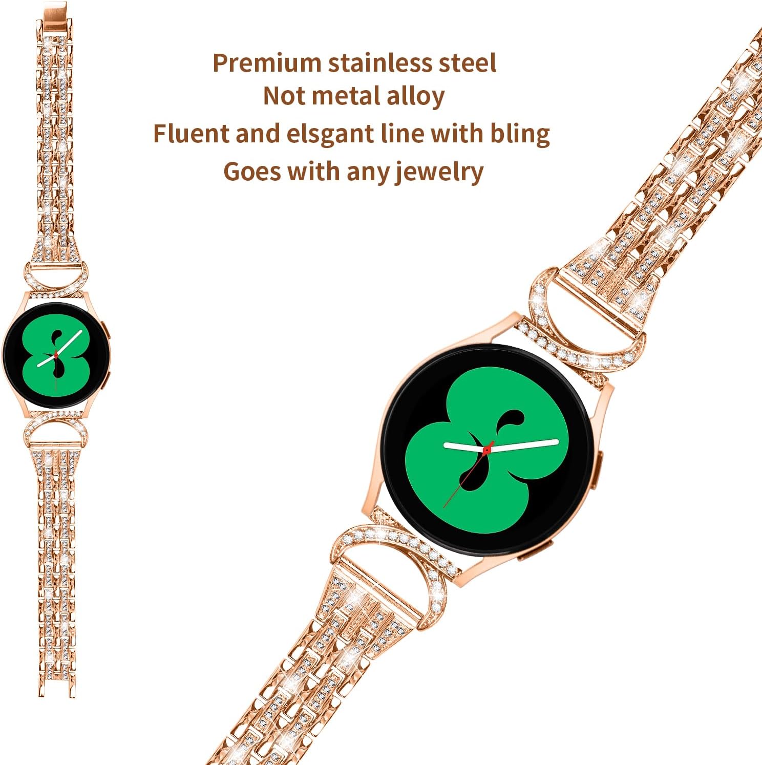 — Made of premium stainless steel mixed with bling rhinestones, multi-element combination, stylish and convenient, easy for wearing and adjust the length, make your watch fashion, nobility, durability, and elegance. Slim and proper thickness for lightweight, provide a nice wearing feeling on wrist.