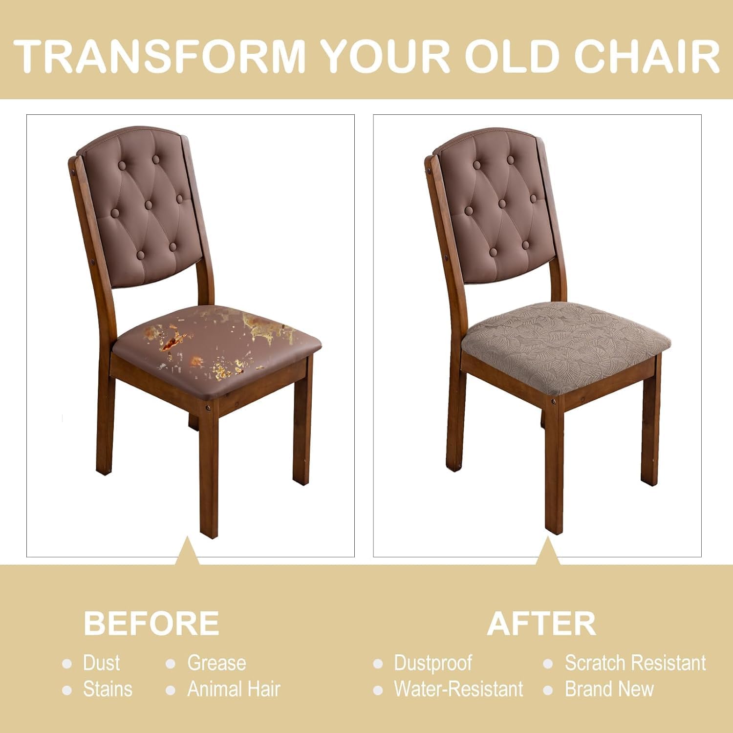 Waterproof Chair Seat Cover for Dining Room-Stretchy Washable Chair Seat Covers Set of 6-Kitchen Chair Seat Slipcovers Protector for Home Restaurant Banquet (Taupe,Large)