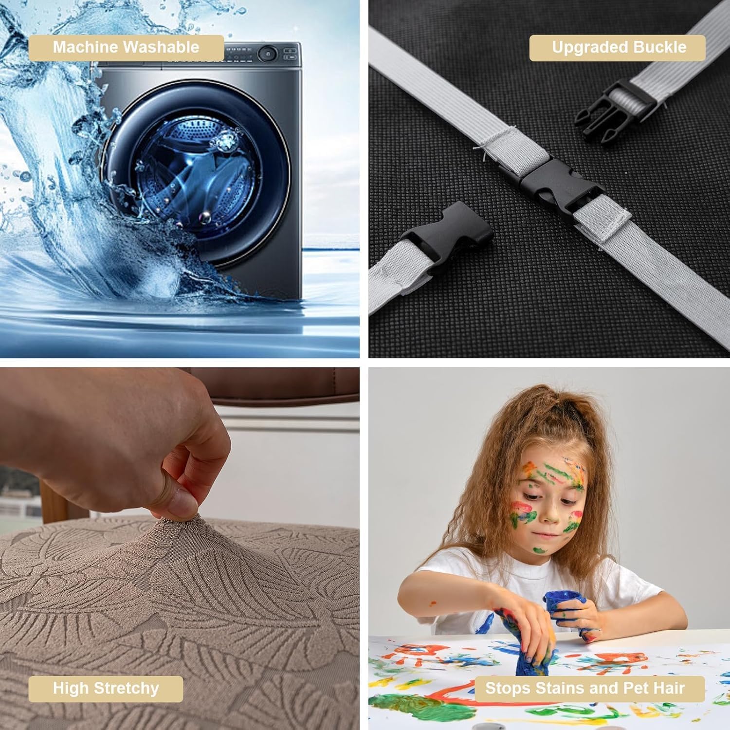 Enhanced Design for Easy Installation: Unlike ordinary dining room chair cover, our innovative retractable belt and easy-to-use buttons make installation a breeze. This design ensures a snug fit, enhancing both the appearance and durability after multiple washes.