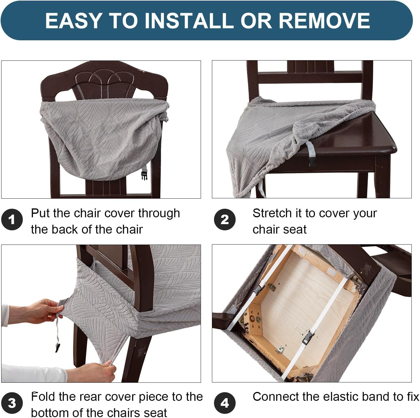 【Easy to Install and Washable Chair Seat Covers】The chair seat cover for dining room adopts one pieces design, easy to install and remove. The elastic band of the seat covers will fully cover your chair and keep it in place. And the seat covers for chairs support hand and machine washable. But Please don’t iron and bleach it.