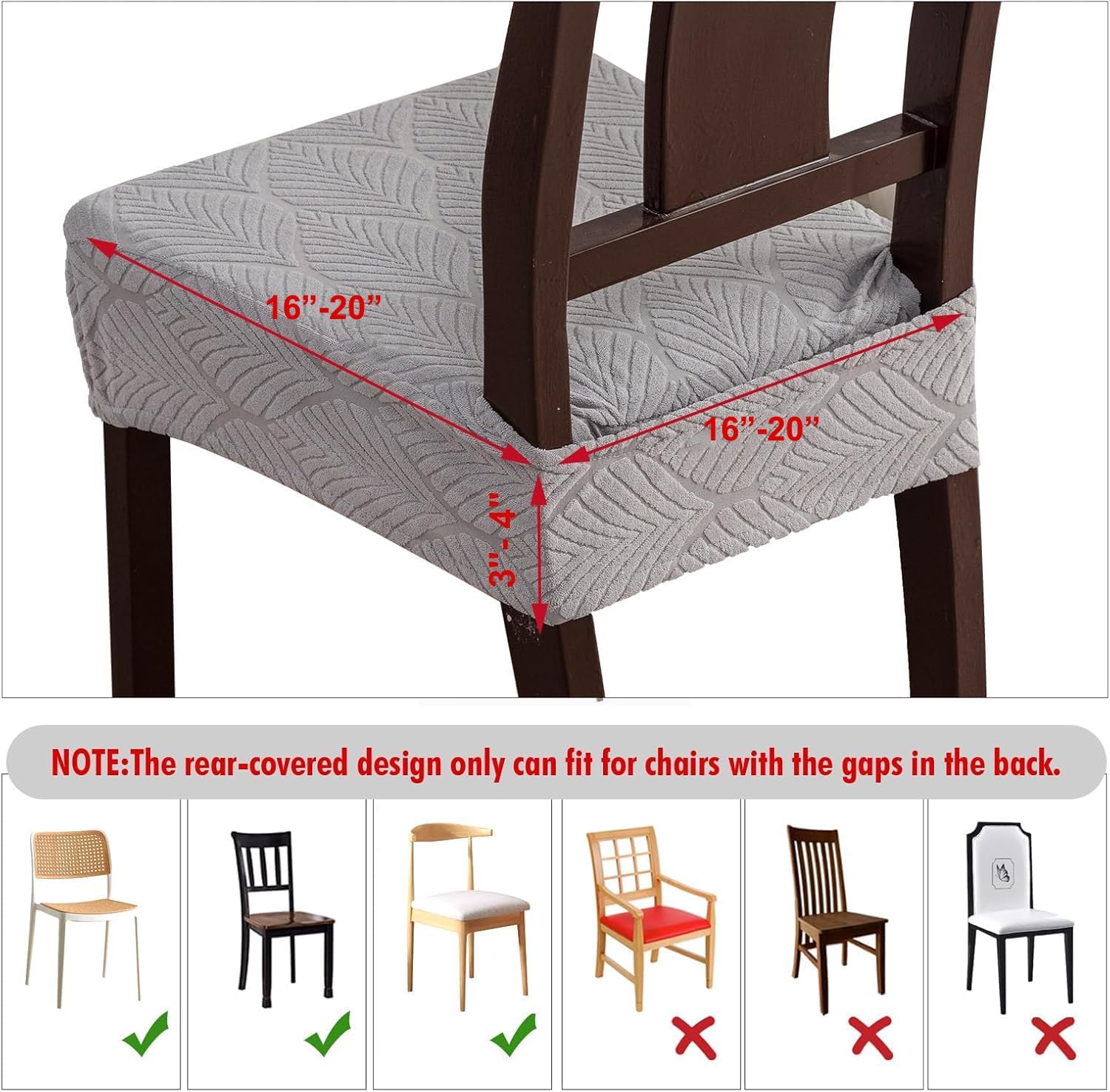 【Fit For Most Dining Room Chairs】NOTE: please measure your dining chair sizes before ordering. Our YUEANG chair seat cover for home can fit for multiple sizes chairs.Seat width 16″-20″, chair seat length 16″-20″, seat cushion thickness 3″-4″. BUT don’t fit for chairs with arms.