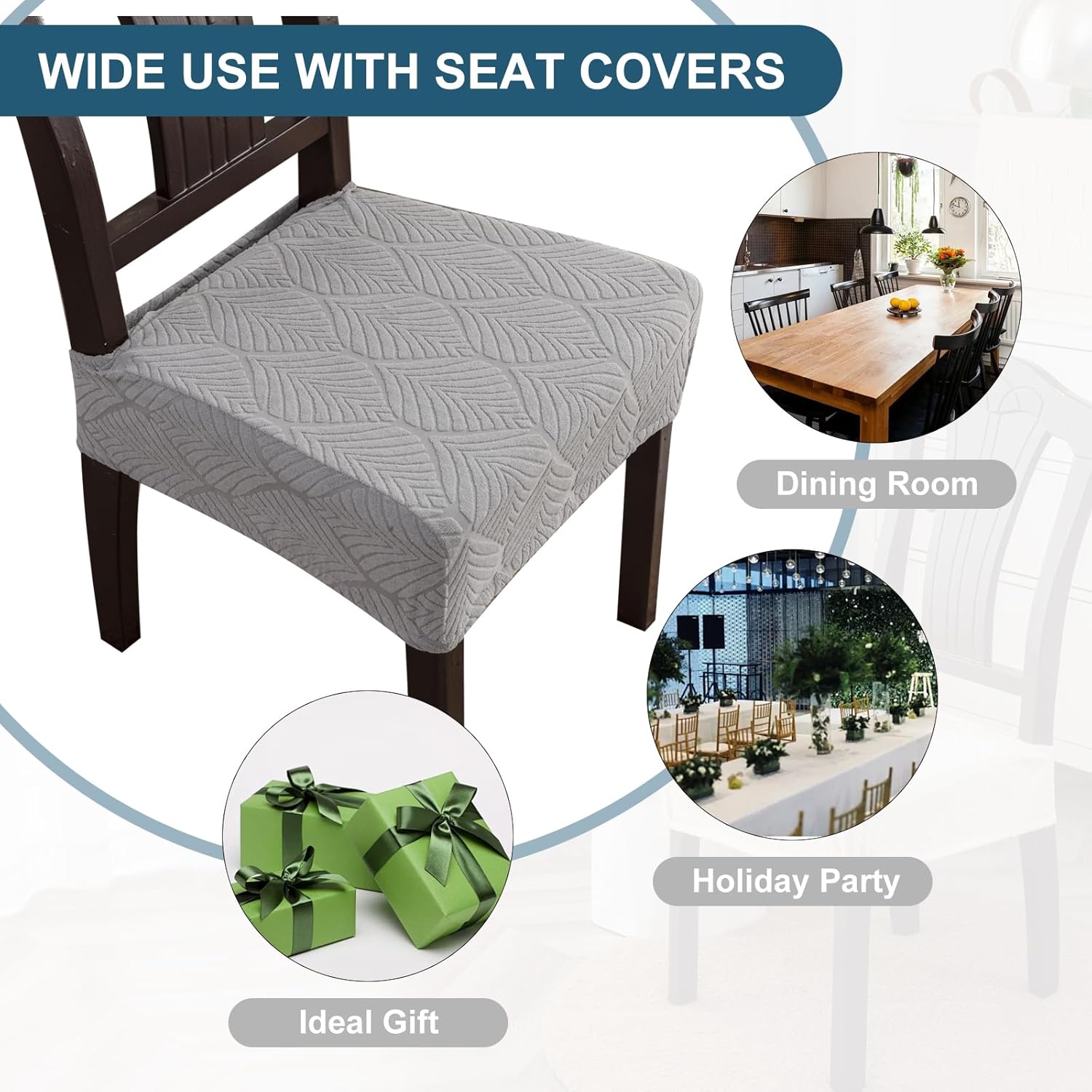 【Wide Use & Warm Customer Service】The dining chair covers can be used in various scenes, such as kitchen, holiday party,dining room or one ideal gift for housewarming.And we can offer you good customer service at any time if you have any questions.