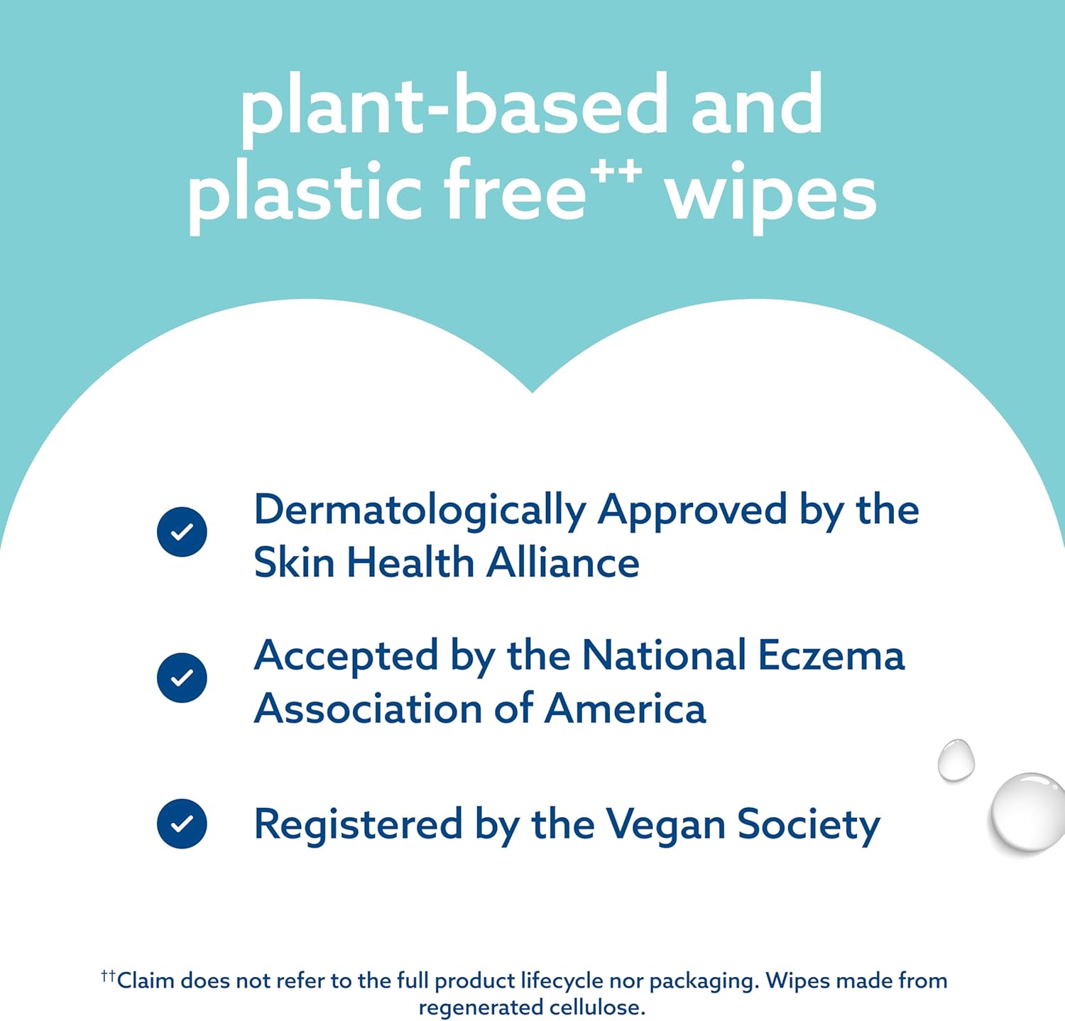 PLASTIC-FREE*, PLANT BASED WIPES: Suitable for eczema-prone skin, WaterWipes are Dermatologically Approved by the Skin Health Alliance, accepted by the National Eczema Association of America and registered by the Vegan Society. *Claim does not refer to the full product lifecycle nor packaging. Wipes made from regenerated cellulose.