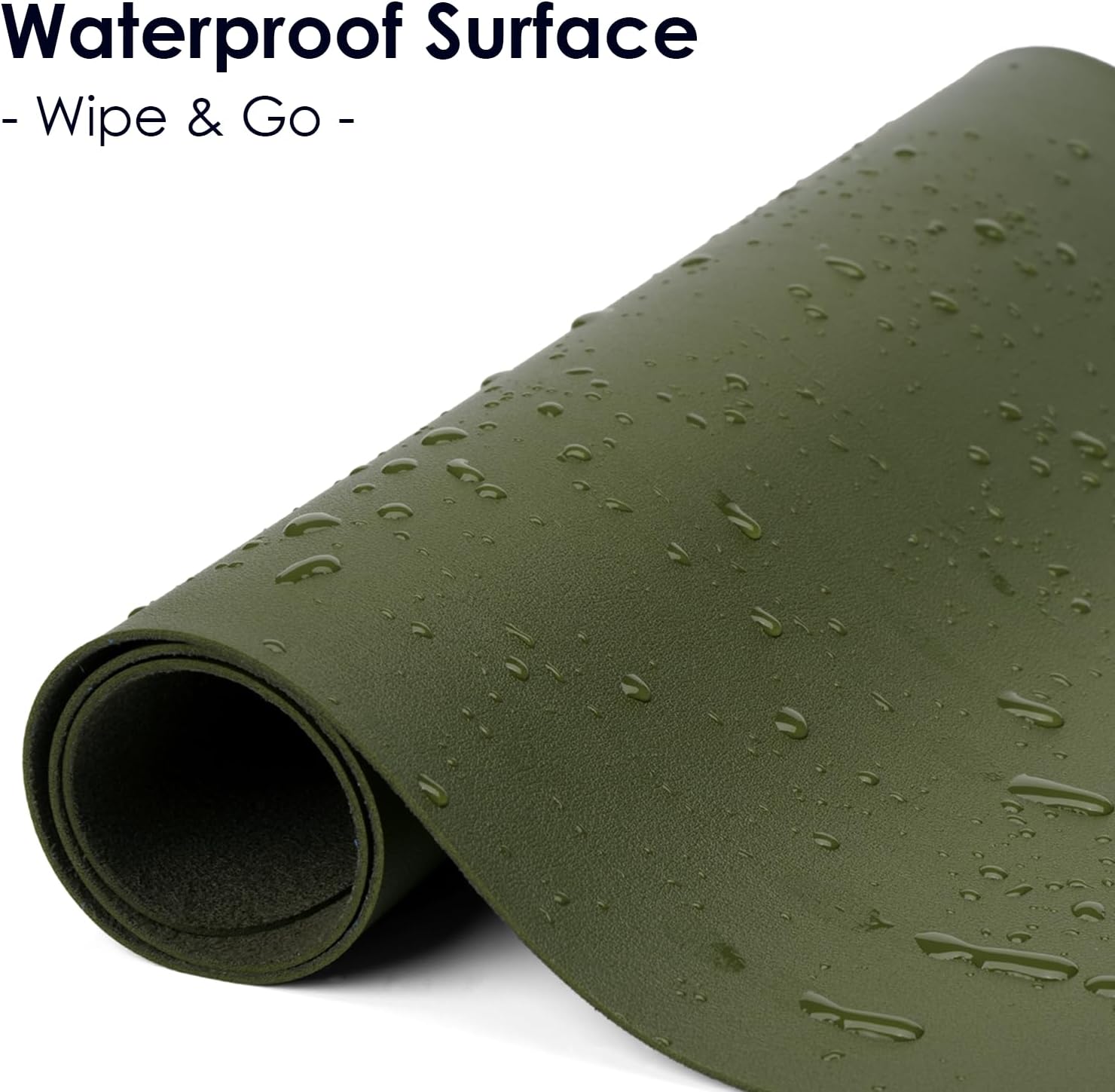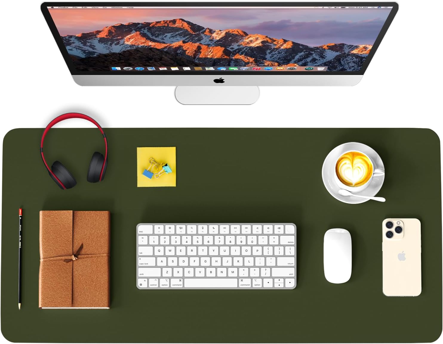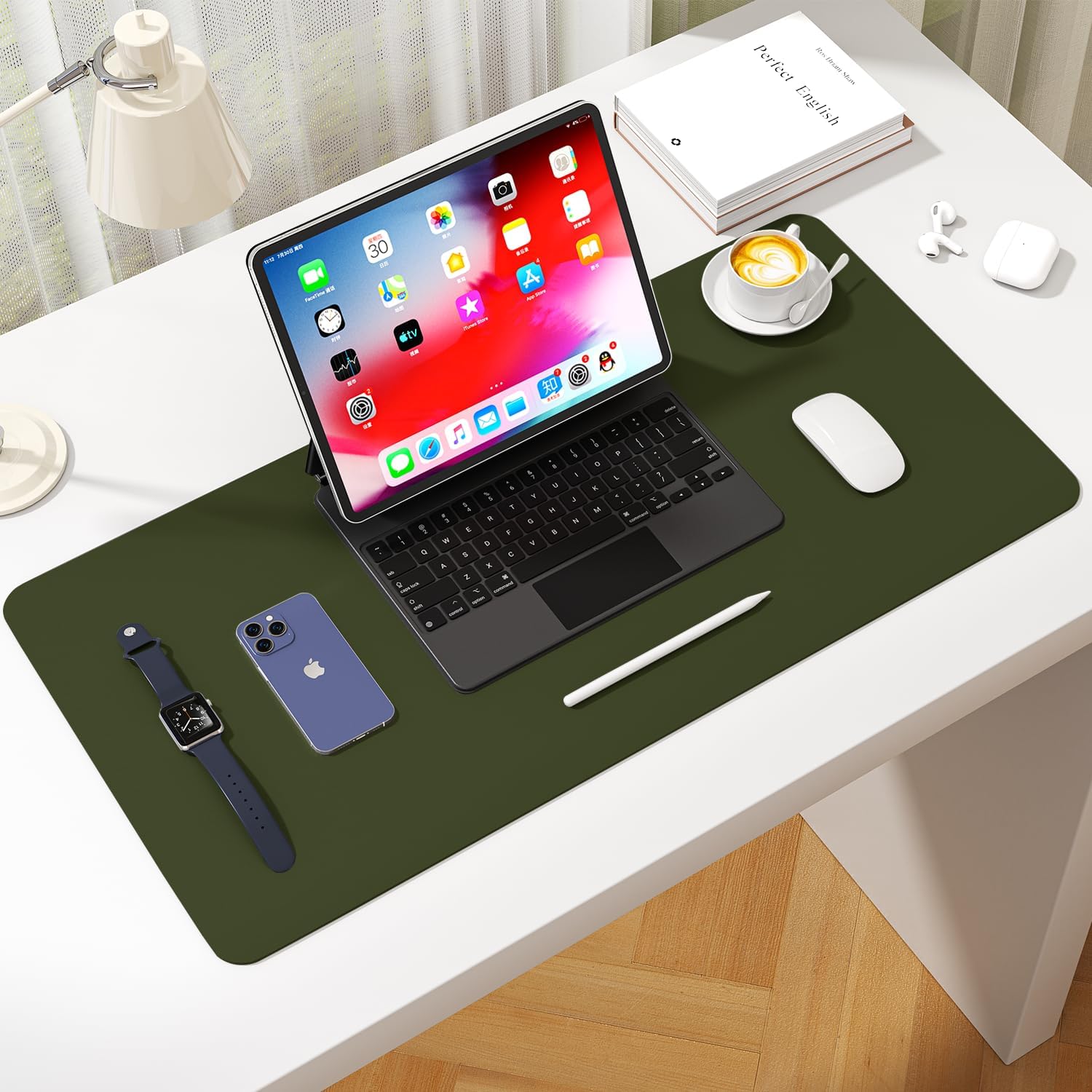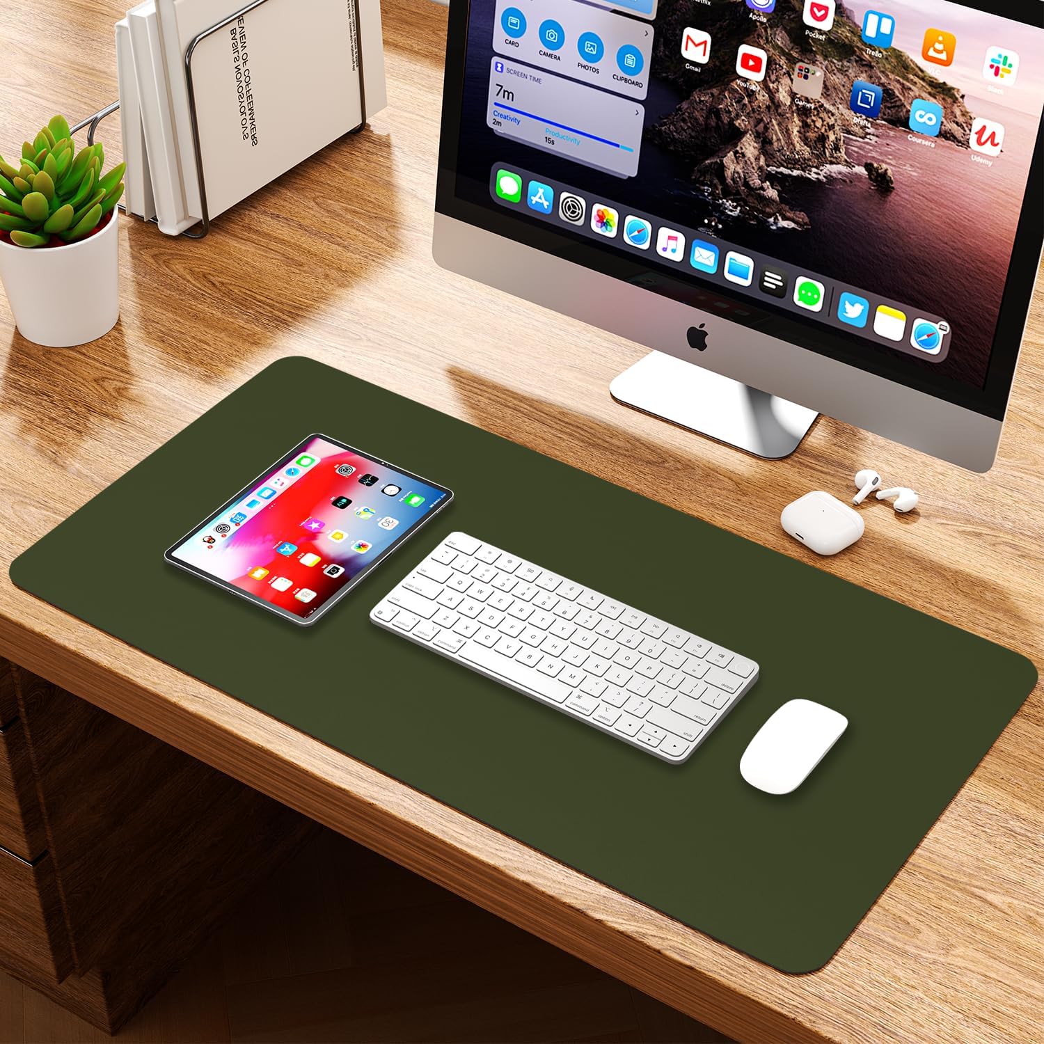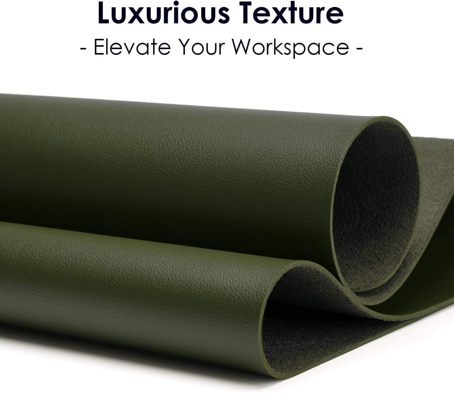 WAYBER Leather Desk Pad Protector, Waterproof Mouse Pad, PU Desk Mat, Office Desk Cover, Desk Writing Mat for Office/Home/Work/Cubicle (Olive Green) 35.4x17in