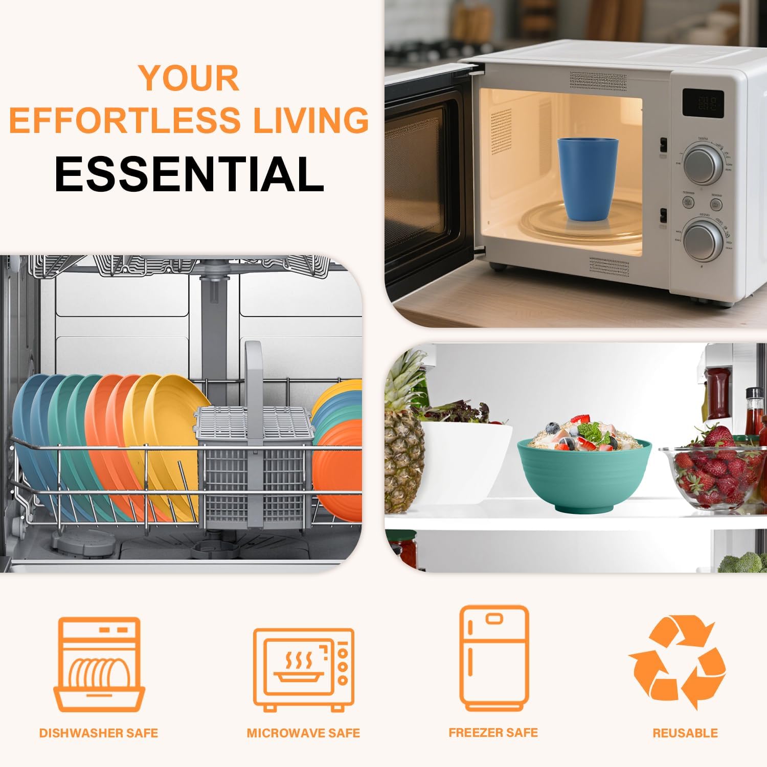 【Premium Wheat Straw Dinnerware Set】 Crafted from wheat straw and high-quality, non-toxic plastic, our dishware is BPA-free, odorless, and rigorously safety-tested. Experience peace of mind with non toxic plates and bowls sets that protect your family without sacrificing quality