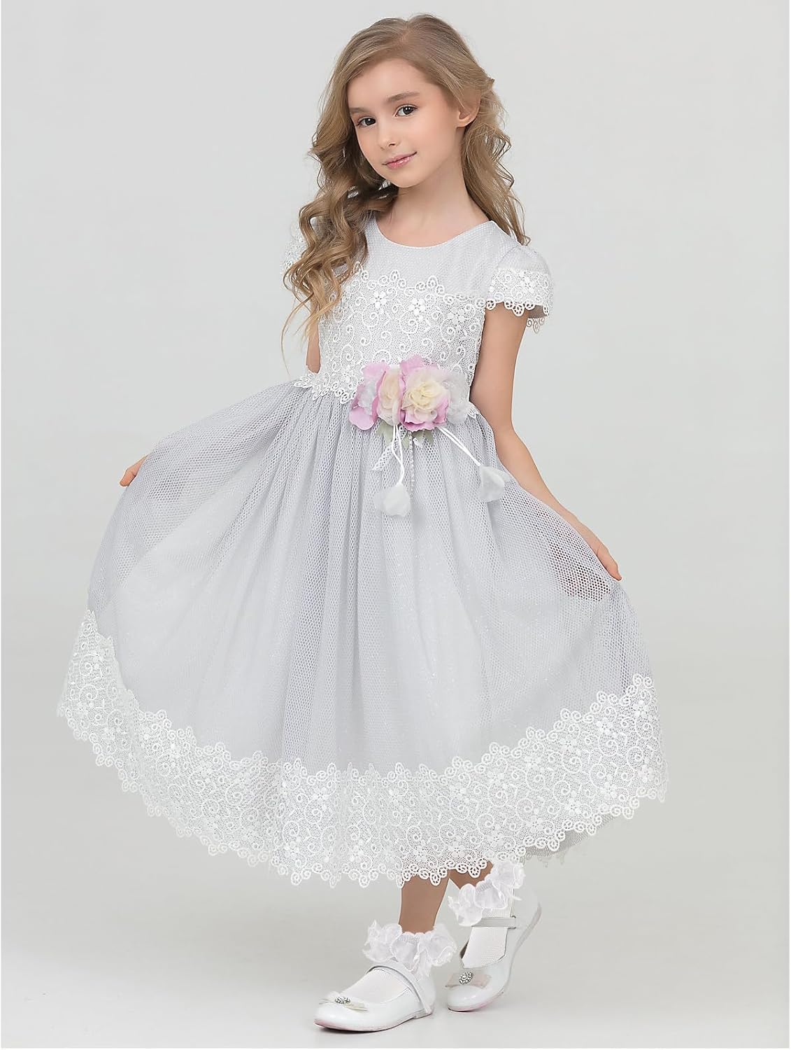 Silver glittery ruffle socks for little girls 4-10 years old