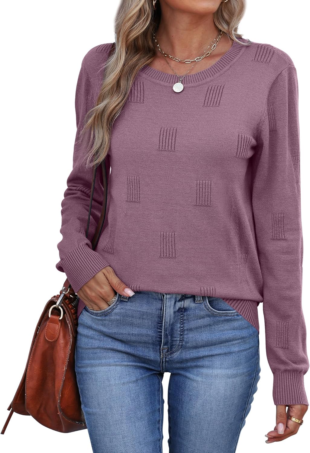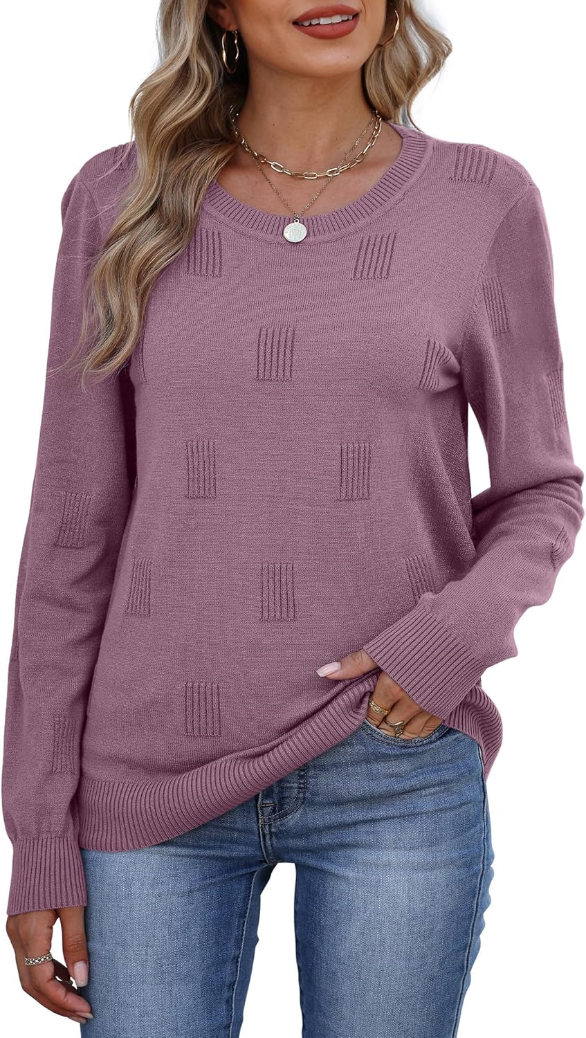 WIHOLL Women 2025 Fashion Pullover Sweater Crew Neck Long Sleeve Shirts Blouse Knit Casual Cozy Clouds Top