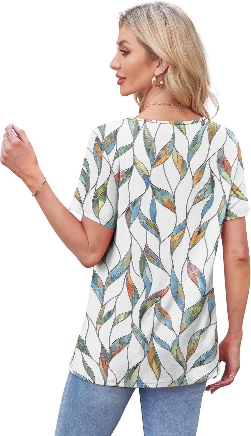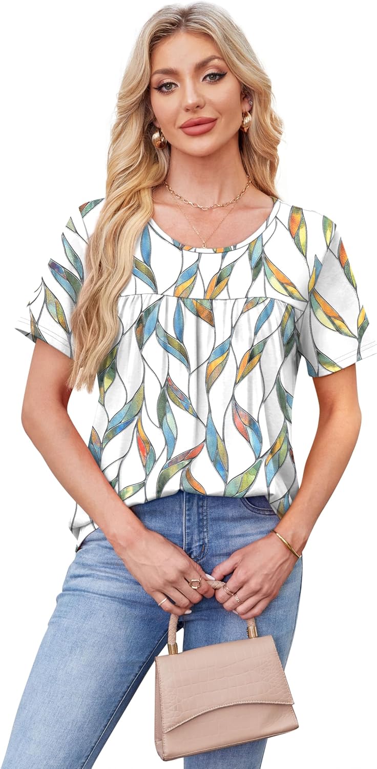 WIHOLL Womens Tops Short Sleeve T Shirts Pleated Dressy Casual Round Neck Summer Clothes Outfits Blouses Loose Fit