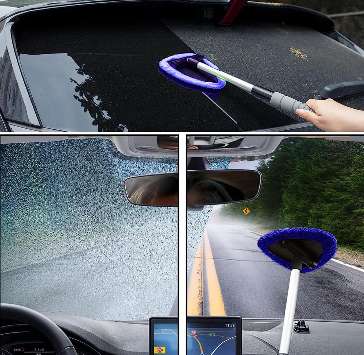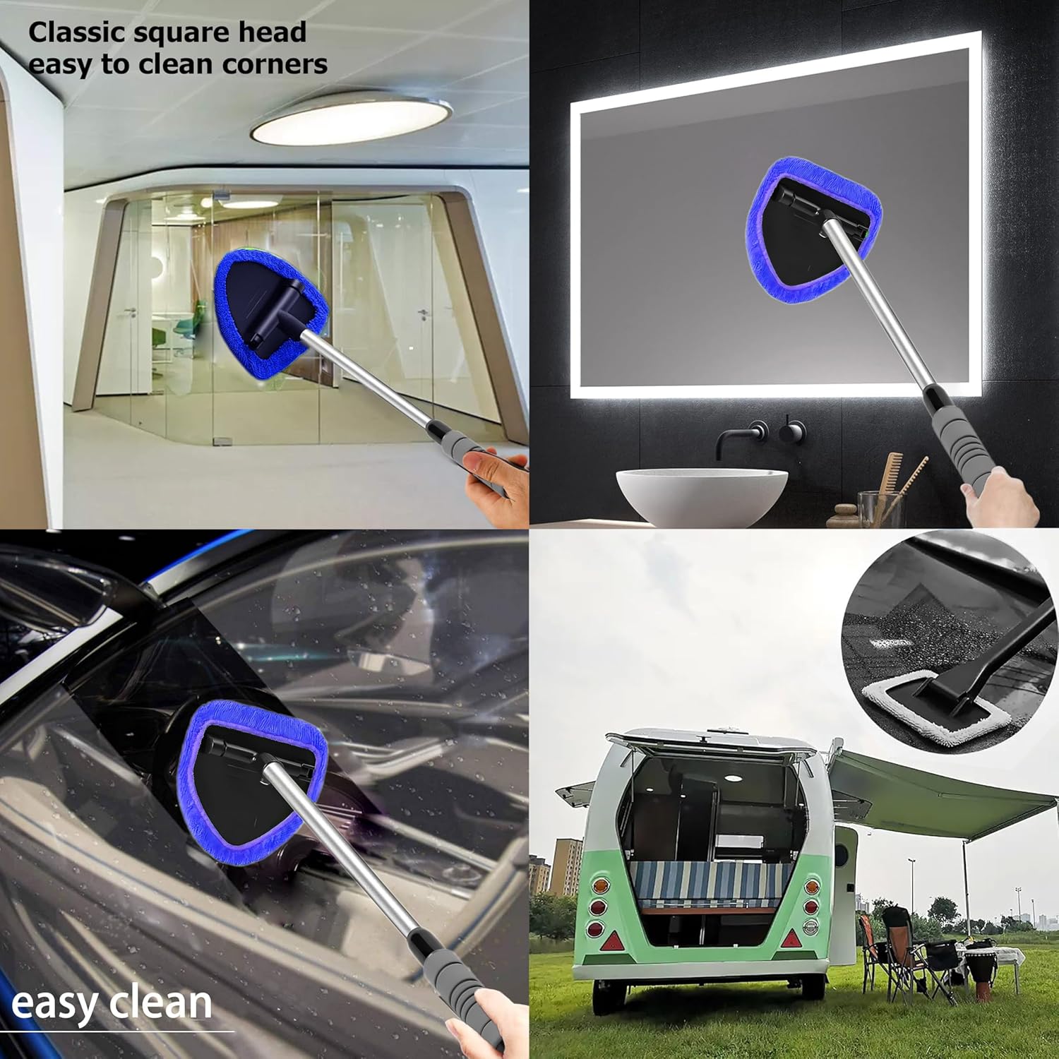 Wide Application: The windshield cleaning tool is suitable for cleaning cars, motorcycles, trucks, RVs, boats, and other glass surfaces. It is ideal for cleaning windows, windshields, mirrors, headlights, and rearview mirrors.