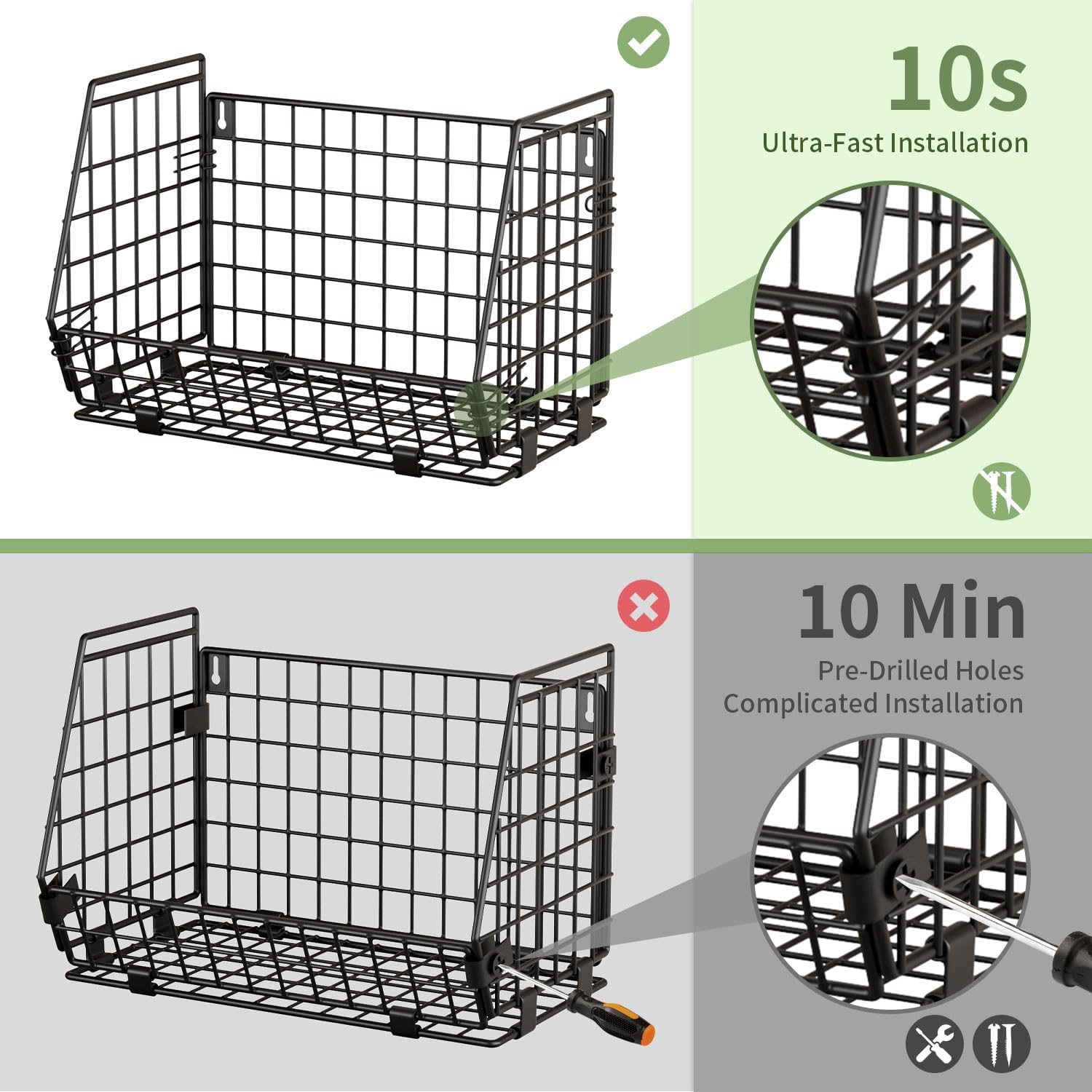 MULTI-PURPOSE STORAGE BASKET: Large size wall basket makes it perfect for multi purpose storage. Beyond the kitchen, these baskets are suitable for your pantry, office, living room, or bathroom with ease. It can use as a fruit basket, onion storage, potato storage, pantry organizer, snack organizer, etc, Whatever your needs, these baskets have you covered.