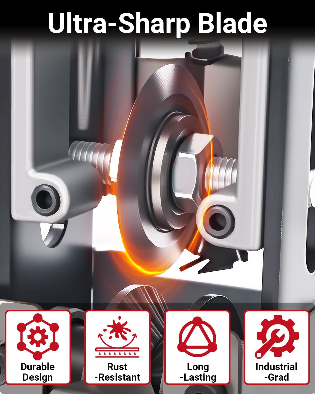 V-Groove Anti-Slip Design & Effortless Blade Changes: Centered wire locking prevents misalignment and core damage. Perfect partner for drill wire stripper operation!Remove just four screws to swap blades in seconds! Includes one extra blade—replace dull blades anytime to save costs.