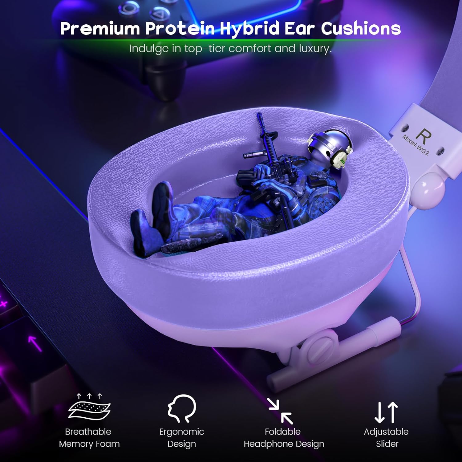 🎧【Ergonomic Comfort Redefined】 Experience unparalleled comfort with the headset’s lightweight headband and cushioned earcups. Crafted from skin-friendly, breathable materials, it ensures a cozy fit even during long gaming sessions or while wearing glasses. Foldable and ultra-comfortable, this headset delivers ultimate gaming comfort for marathon play sessions.