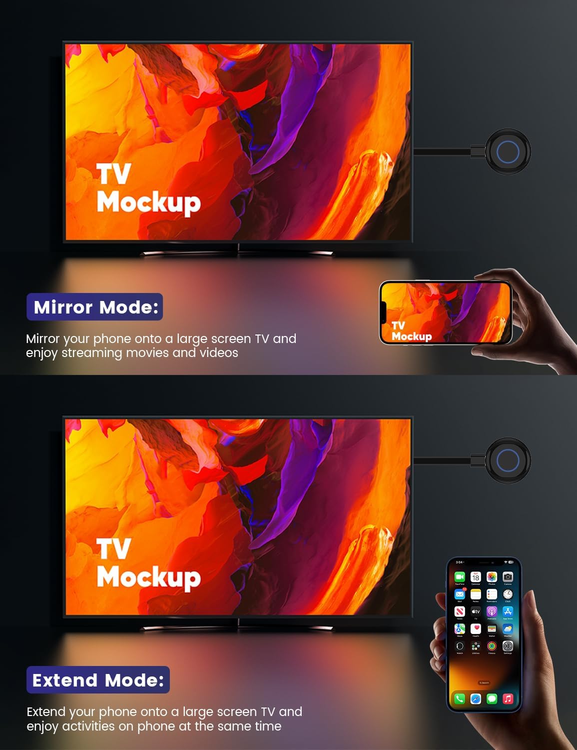 【Compact & Portable Design】: Take your entertainment wherever you go! This lightweight, pocket-sized dongle is just right for home, the office, or when you’re out and about. In just seconds, you can turn any HDMI-equipped screen into a wireless powerhouse!
