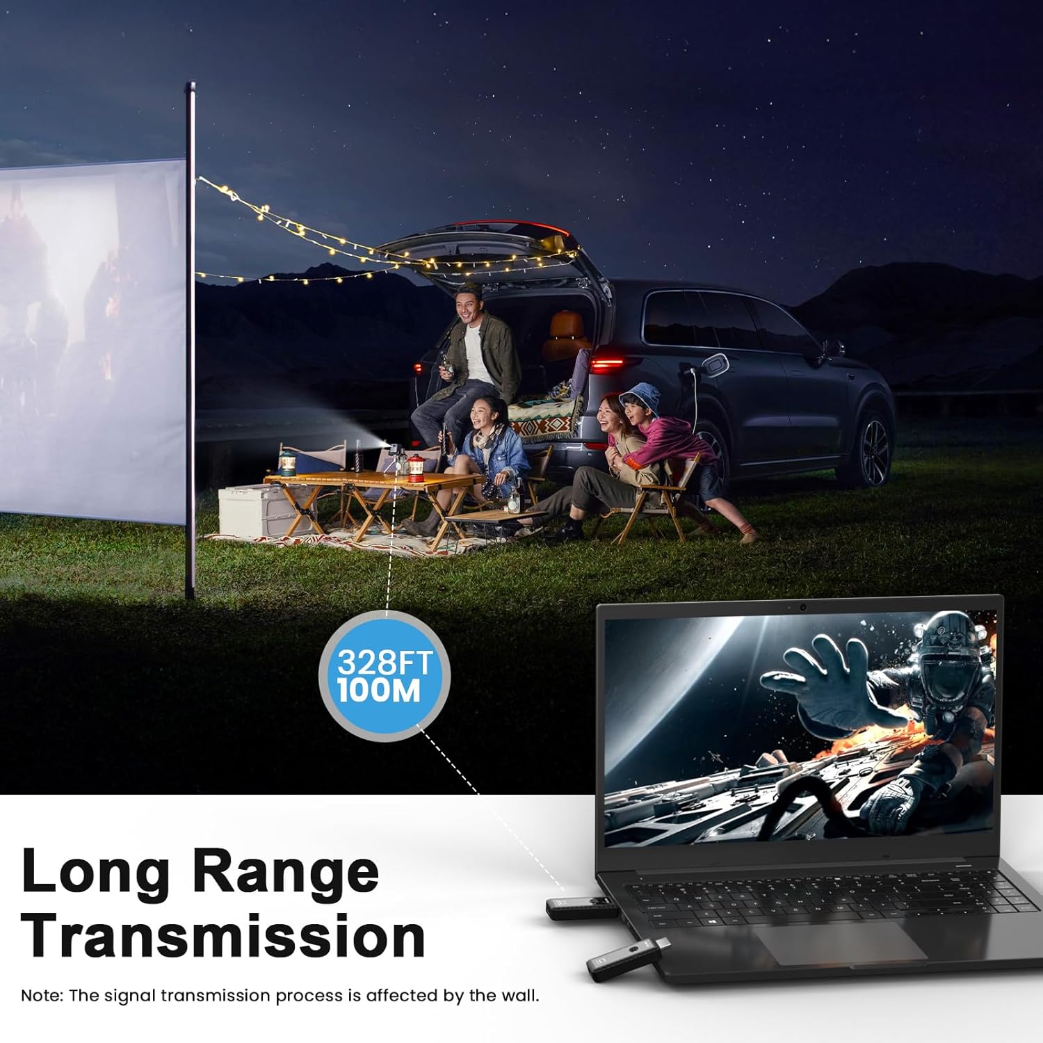 Note:Transmission distance and speed may be affected when the product passes through walls or encounters obstacles.