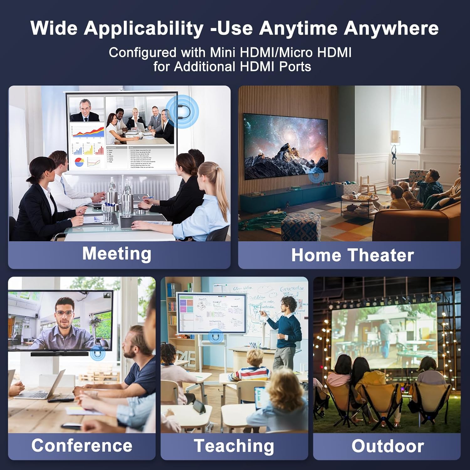 【 No APP Required Plug and Play 】 HDMI Wireless Transmitter and Receiver No Driver, No Bluetooth, No Wifi, Plug and Play, up and running quickly in 10 seconds, enjoy a true plug and play experience. Solves the problems of traditional HDMI cable connection, affecting aesthetics and short transmission distance, and the compact and easy to carry design doesn’t take up much space. Perfect for business meetings, corporate meetings, sharing conference materials, etc.