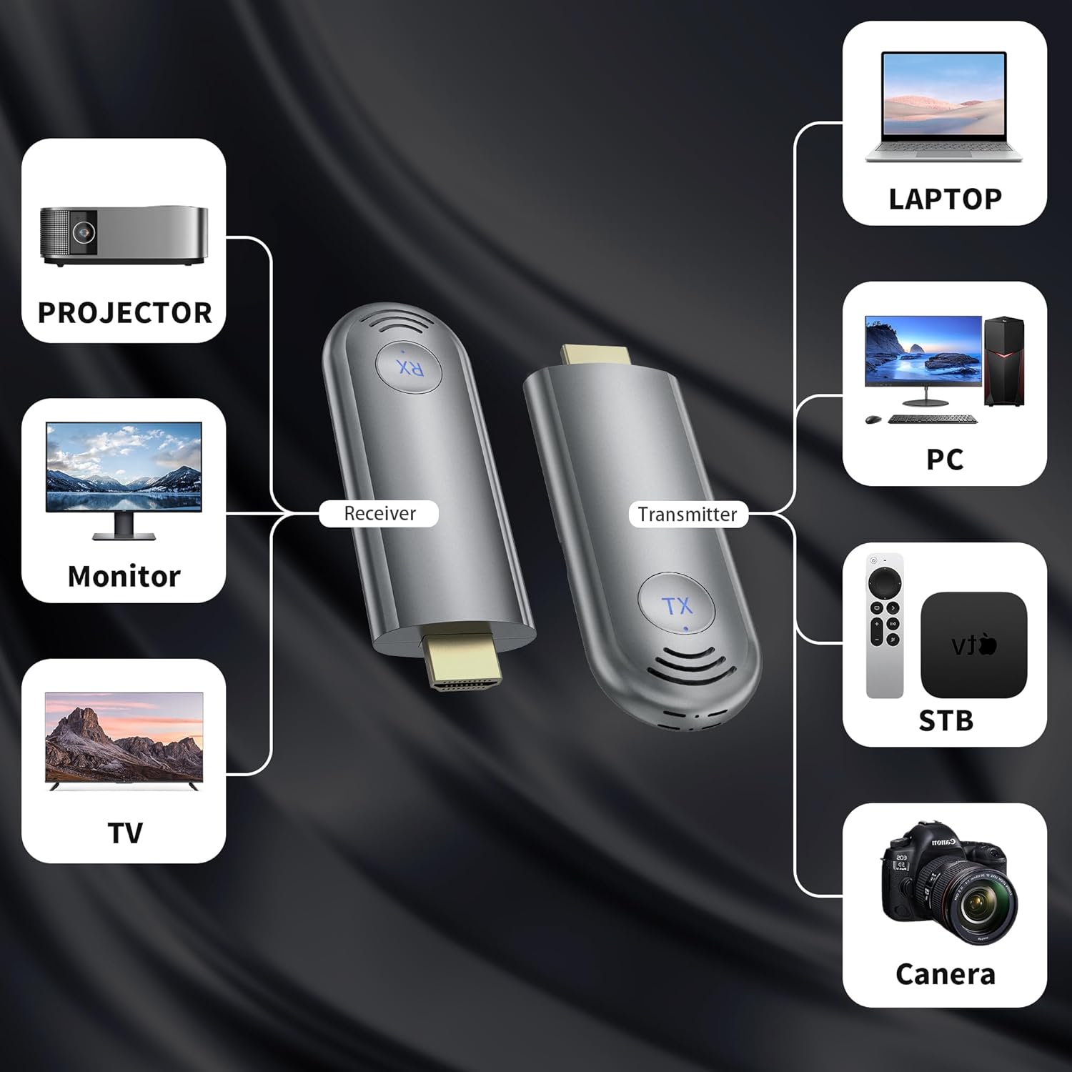 【Portable and Travel-Friendly】Wireless HDMI Transmitter and Receiver is compact and lightweight, making it ideal for carrying with you on business trips, vacations, or family gatherings.Travel essentials. Easily achieve high-quality connections wherever you go, enjoying the convenience of wireless HDMI.