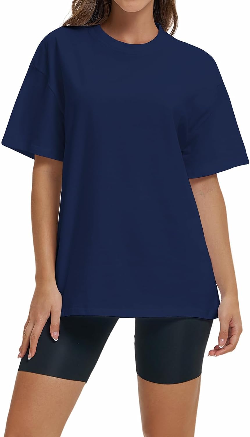 Women Oversized T Shirts Summer Casual Crewneck Short Sleeve Basic Tops Cotton Loose Fit Clothes