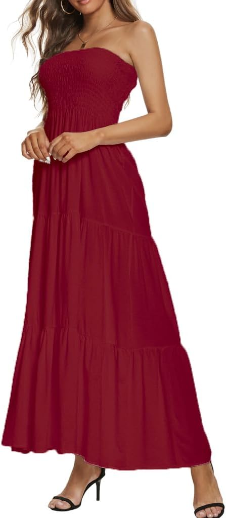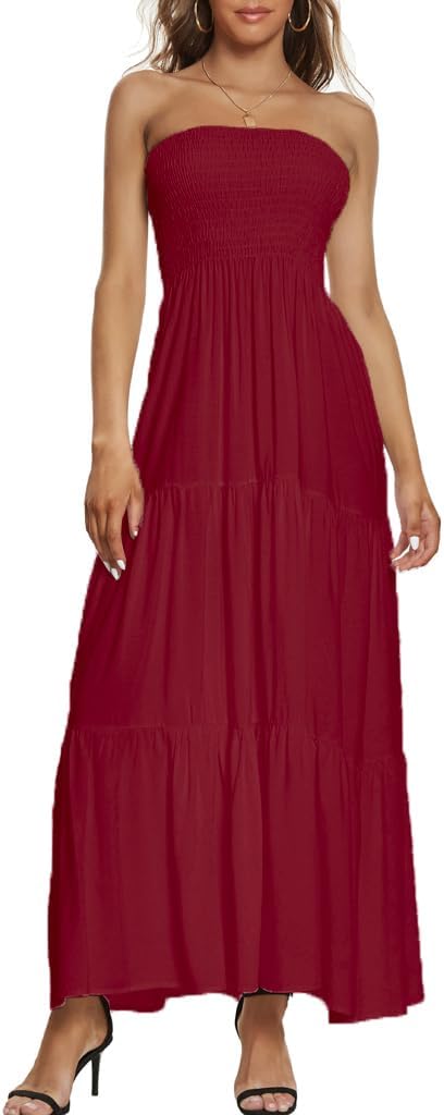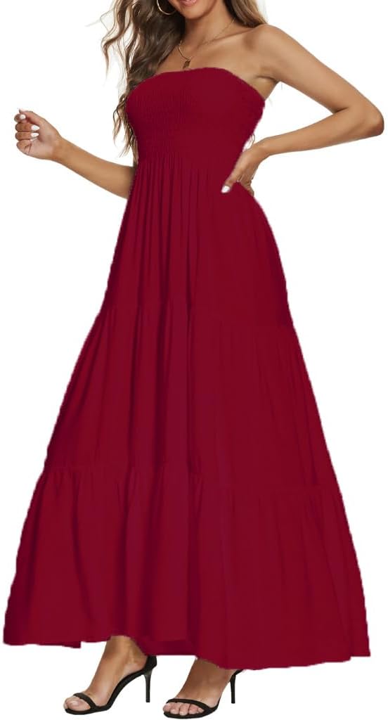 Tube top Floral and Pure Color maxi dresses, off shoulder, strapless, Flowy tiered ruffle skirt, floral printed bohemian dress, lightweight also, super cute casual dress for summer time.