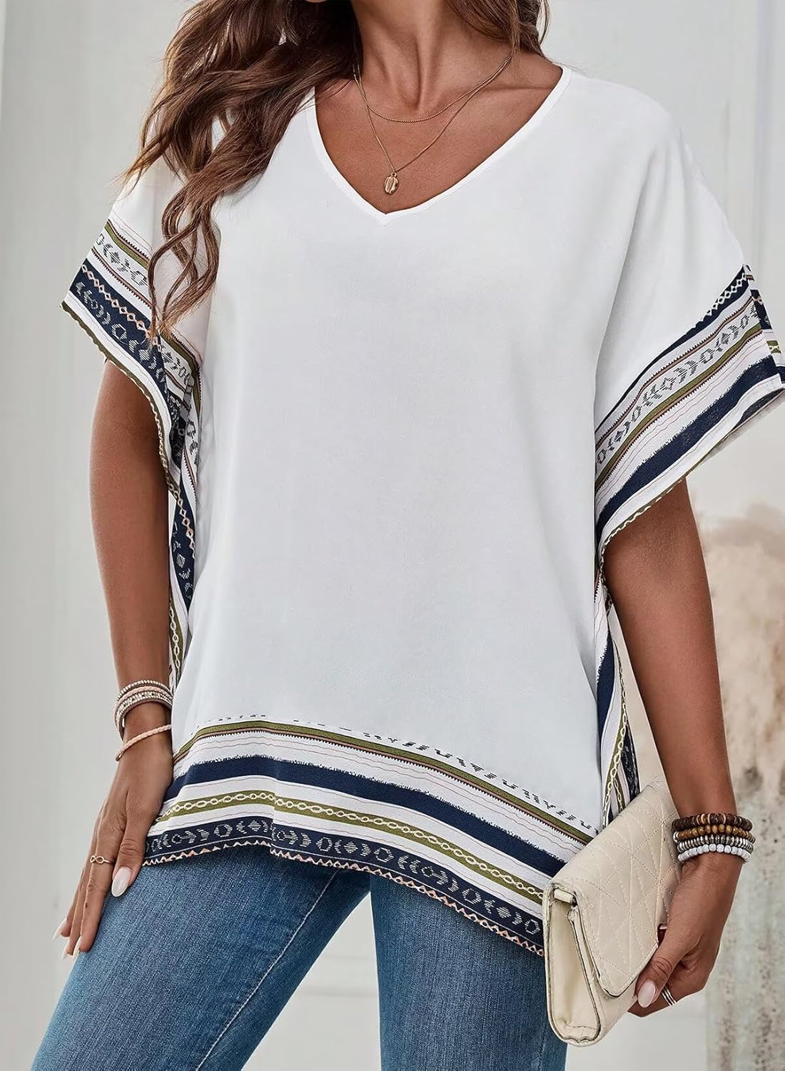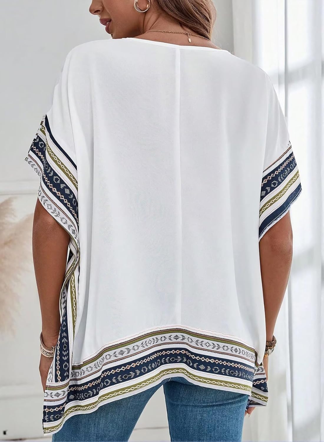 The video showcases the product in use.The video guides you through product setup.The video compares multiple products.The video shows the product being unpacked. Batwing Sleeve Tops for Women Merchant Video