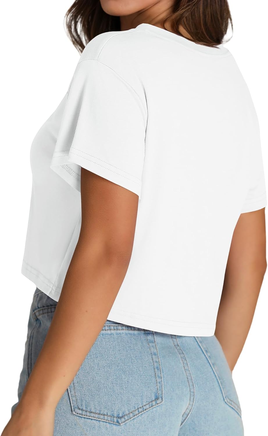 Womens Crop Tops Summer Baisc Tees V Neck T Shirts Casual Short Sleeve Cropped Top