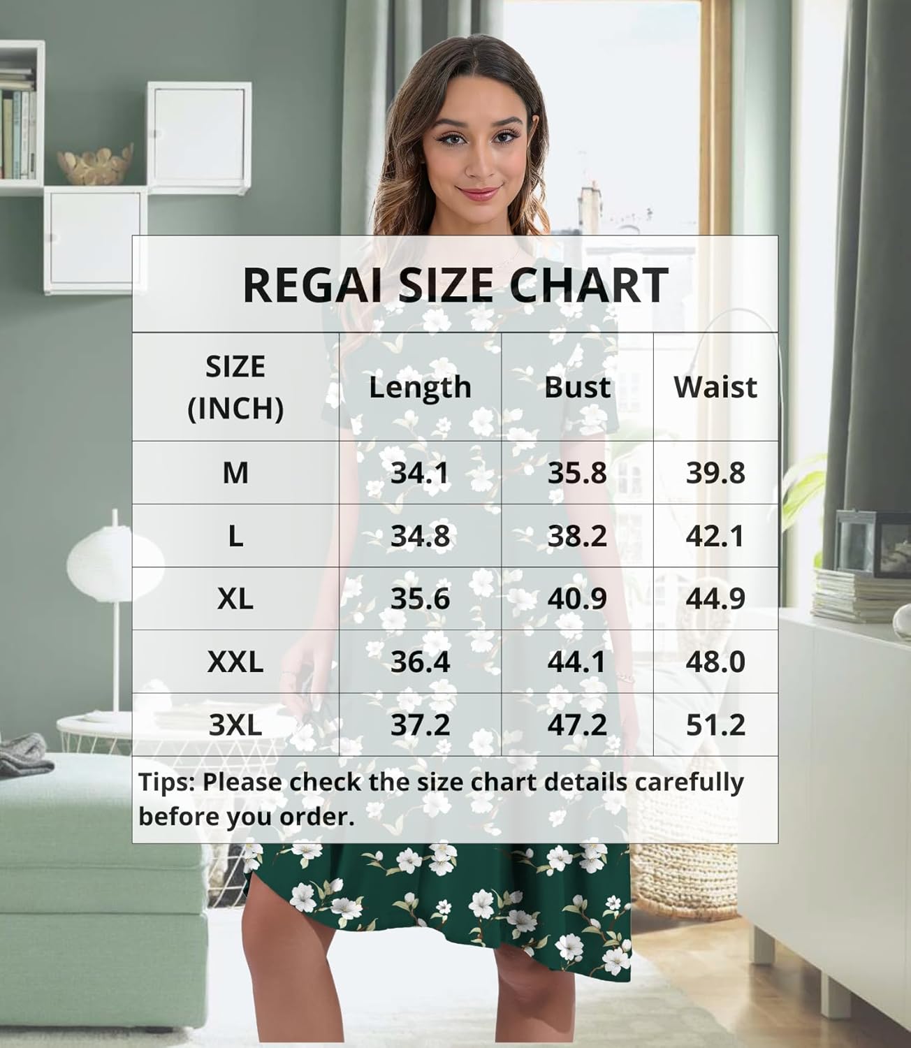 Regai Women’s Casual Short Sleeve Crew Neck Loose Swing Dresses with Pockets