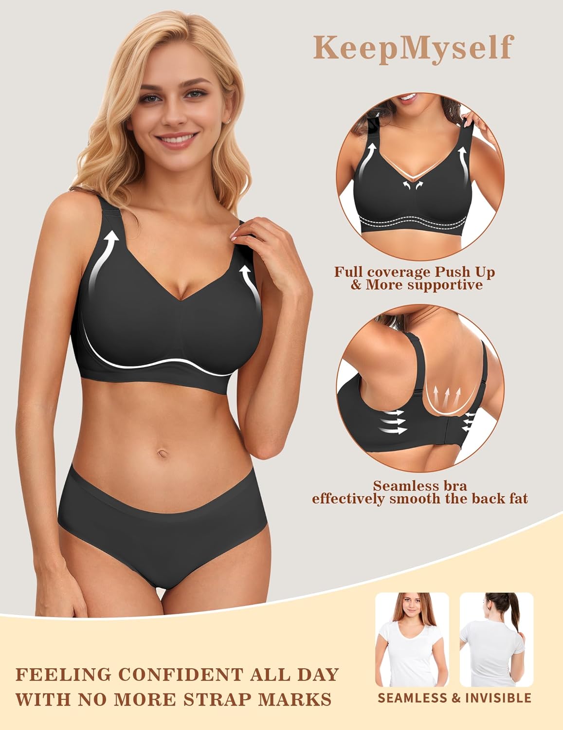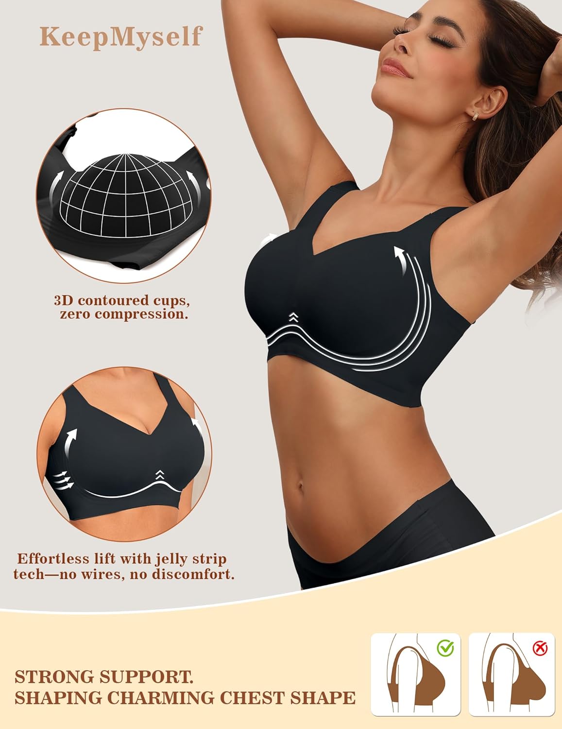 Remember that end-of-day sigh taking off a restrictive bra? We do. That’s why KeepMyself exists. We believe comfort isn’t a luxury, it’s essential self-care. Our seamless, wire-free bras are designed with ultra-soft fabrics to let you move freely and feel truly you. It’s about choosing to keep your comfort, keep your ease. KeepMyself.