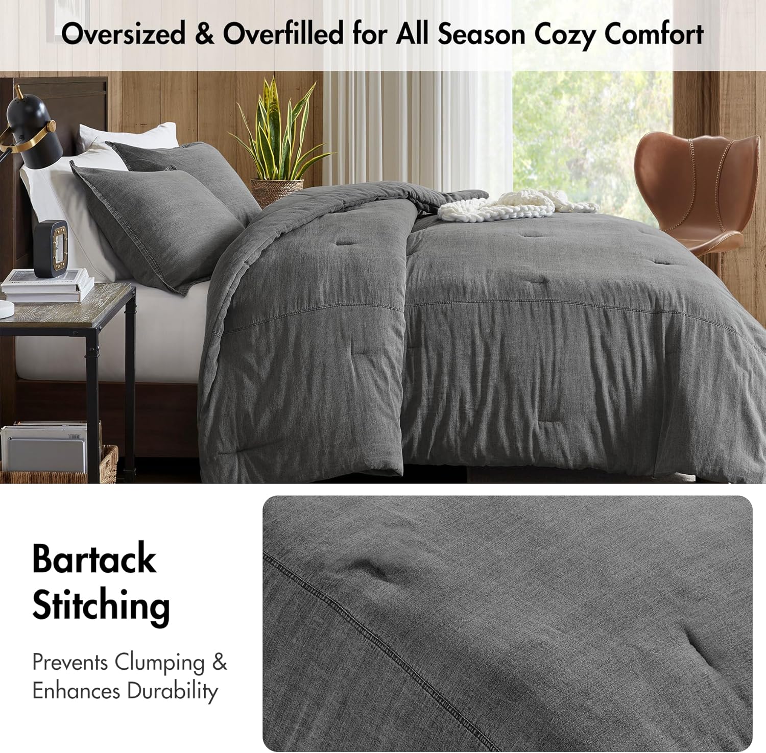 Woolrich Twin Comforter Set Cotton Stone Washed, Oversized Comforters Twin Size Bed, All Season Down Alternative Overfilled Twin Size Comforter, McKenzie, Twin/Twin XL Grey 2 Piece